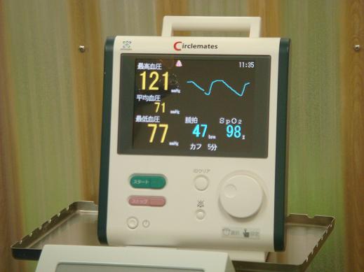 写真:インプラント手術中の全身管理のために、モニターを使用して、より安全性を高めています。