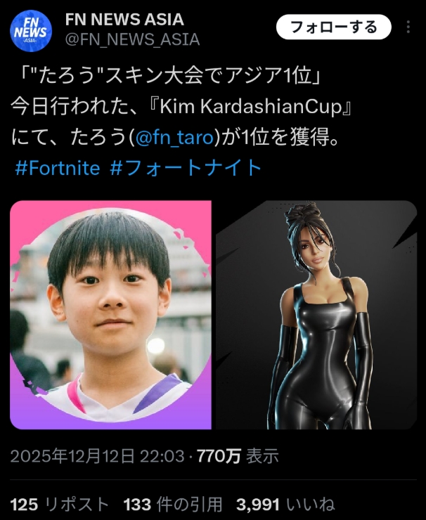 フォートナイトの「Kim Kardashianカップ」は、賞金ではなく、ゲーム内アイテムの早期アクセス権(スキン)を獲得するための大会です。