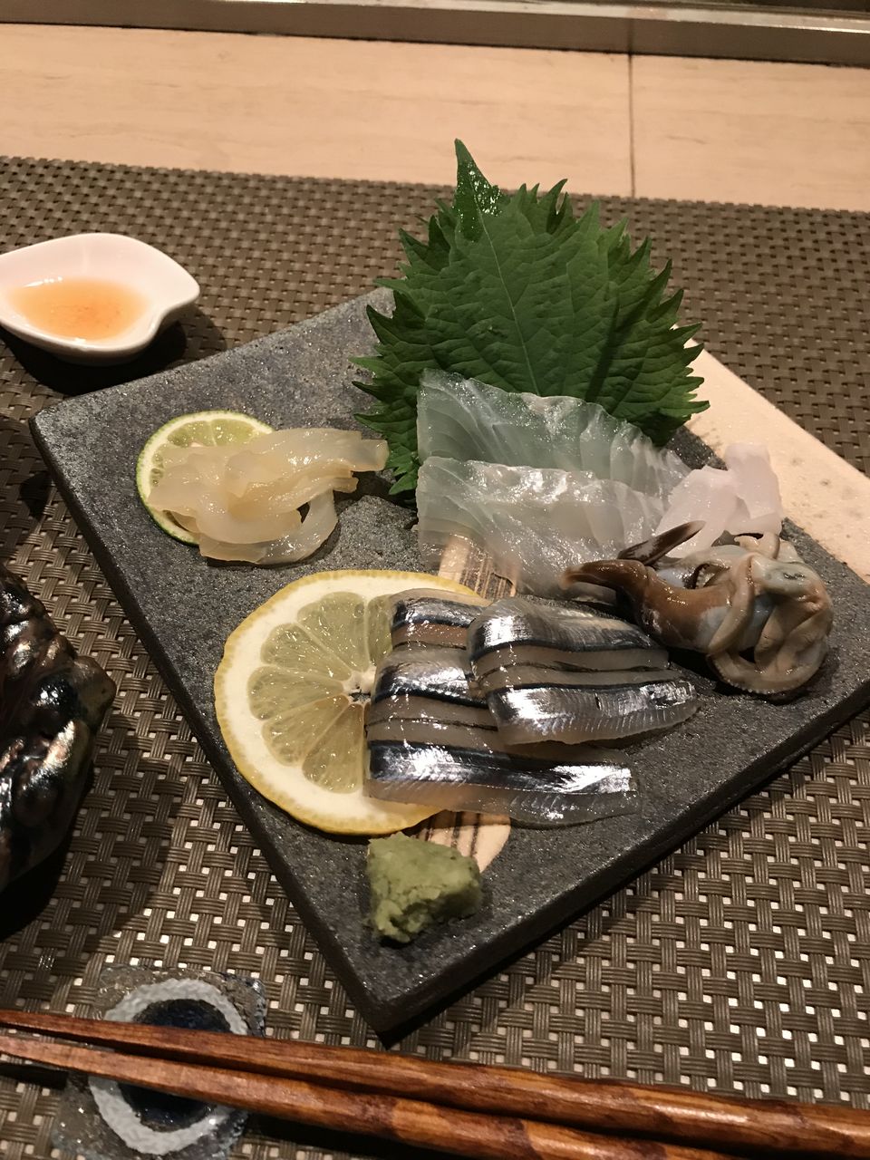 御造りとお寿司の一皿。