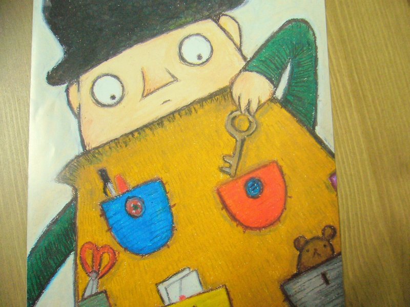 個人的にも大いに楽しめたのですが(亀グッズが意外と多かったのだ)、文具好きとして特に惹かれたのはクレヨン画。これです、これ。クレヨンってこんなに表現力豊かな画材だったのですね。