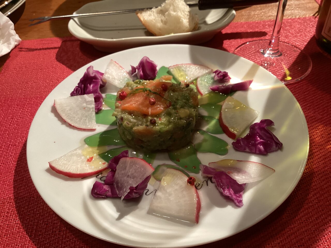 最近の料理長の得意料理、サーモンとヌキアのタルタル。