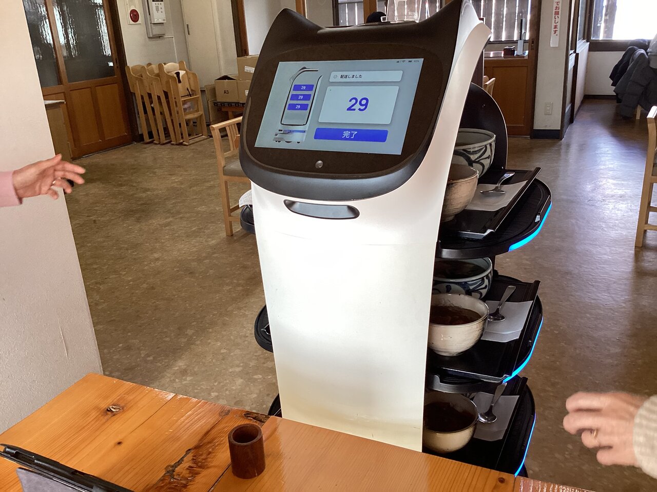 こんなところでも昨今は配膳ロボットが活躍中。はは(笑)手がうどんを求めている。