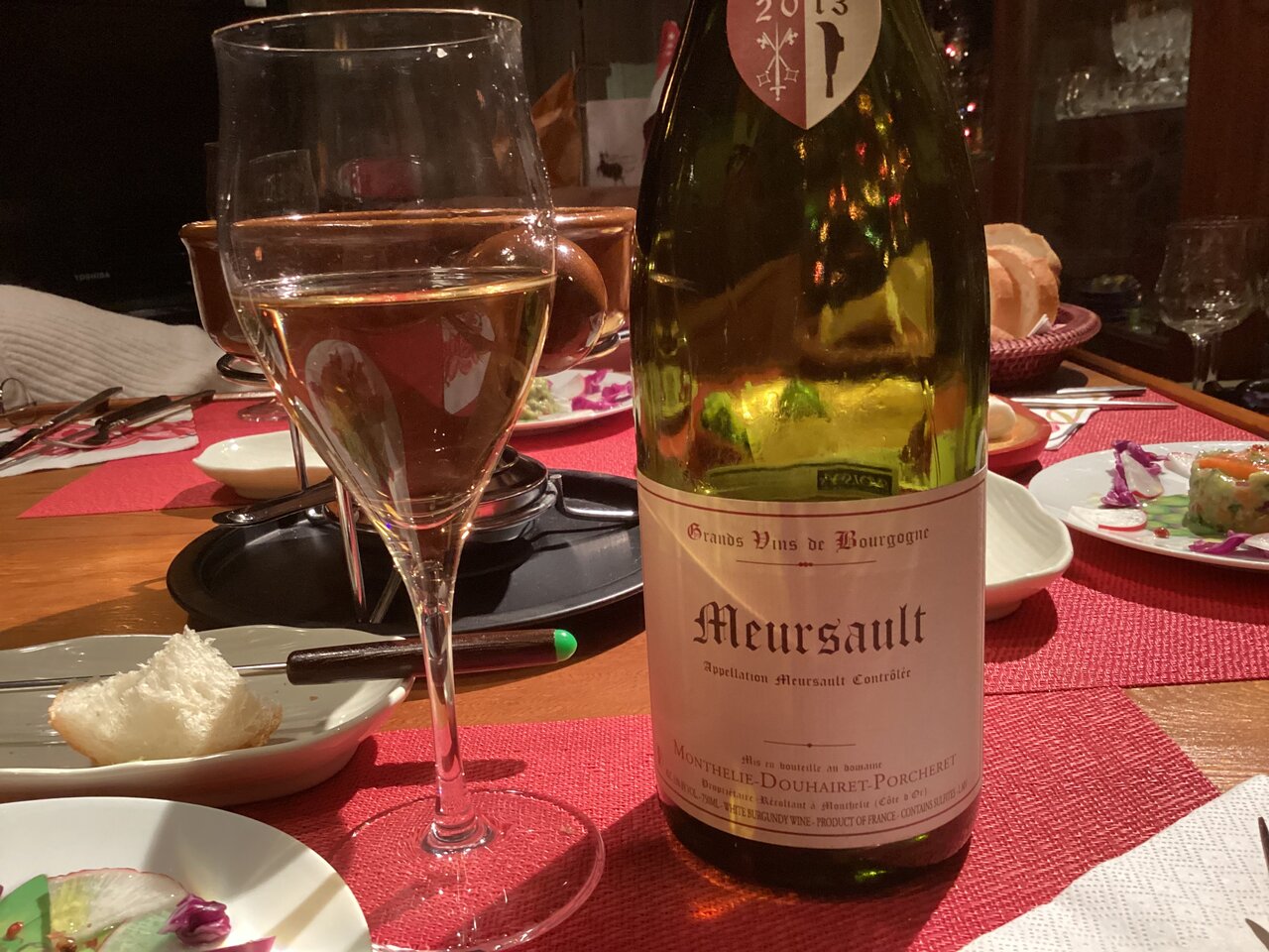 イブの夜はやっぱり洋食とワイン。まずはチーズフォンデュとブルゴーニュの白。