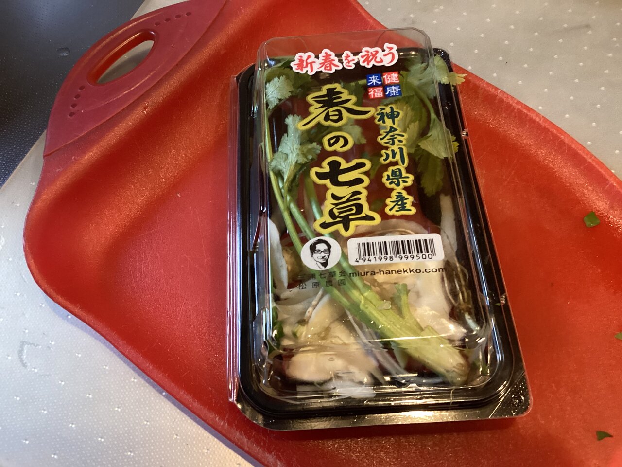 春の七草を野で摘んでくるなどあり得ない。今時はこんな便利なセットが売られている。「新春を祝う」と記されているがちょっと意味が違うような。さて、七草粥は今日しか食べないし、全家庭で作るわけでもないだろうから余ったらどうするんだろう、と余計な心配。