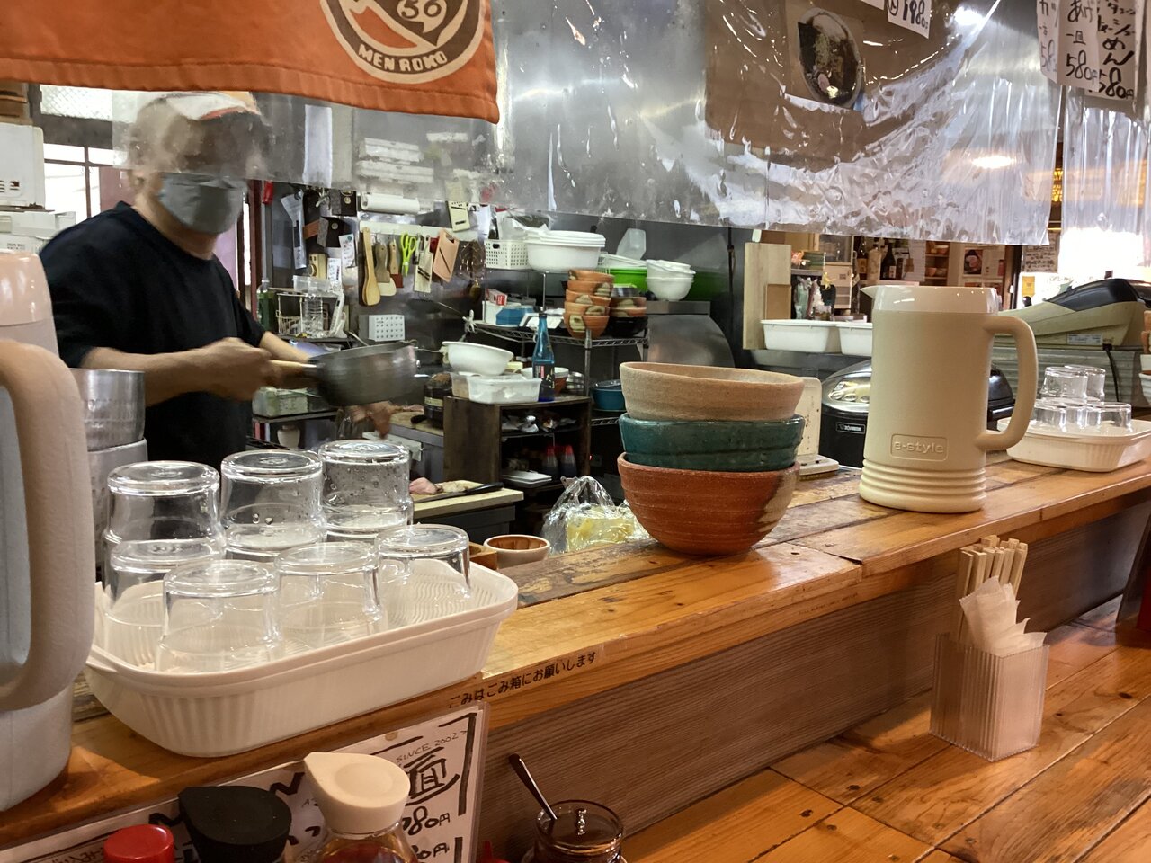 淡々と料理を作る厨房内の五郎さん。本当にこれまでご苦労さま!聞けば倅に任せていた安中のあってりめん一号店も一昨年に閉店。従ってあってりめんは当分の間食することはできない。残念だなぁ、、、。