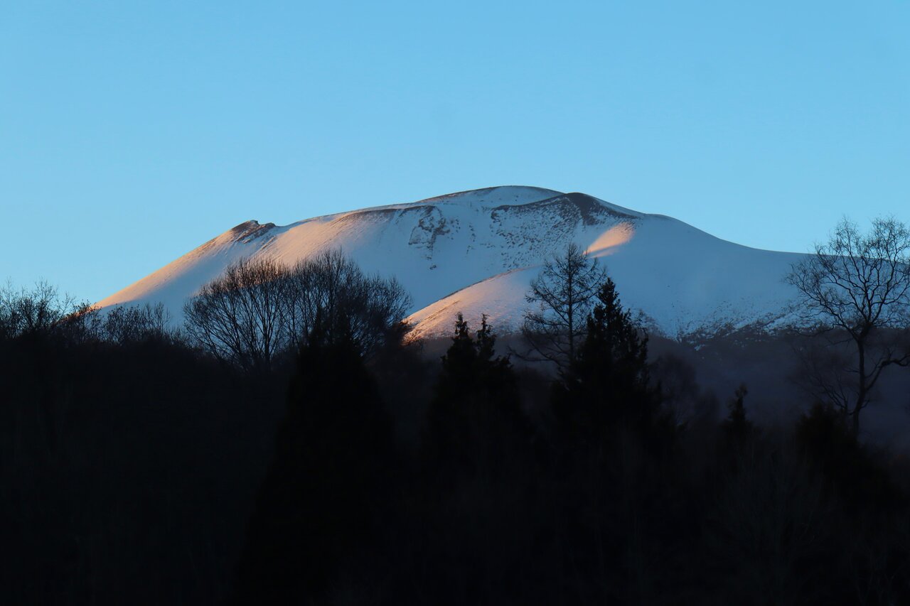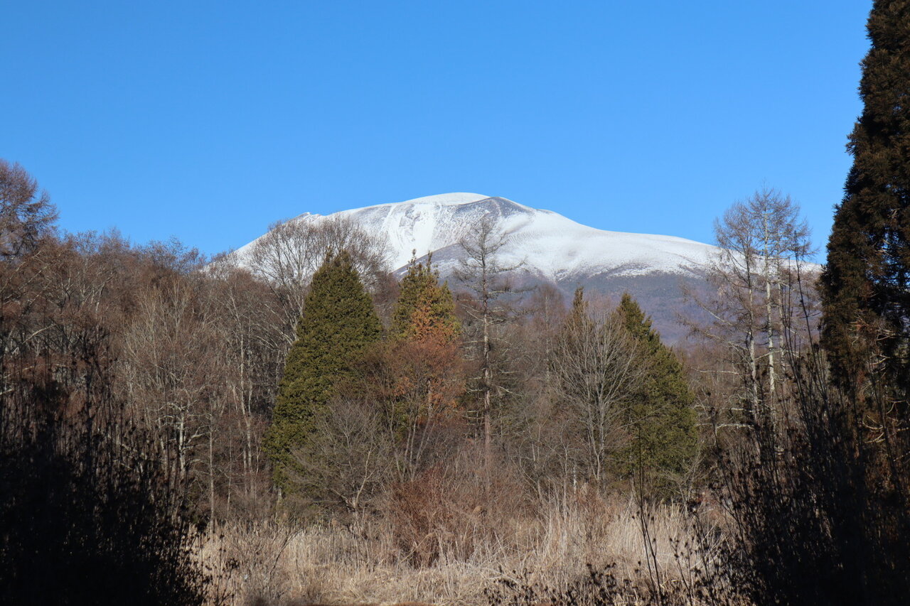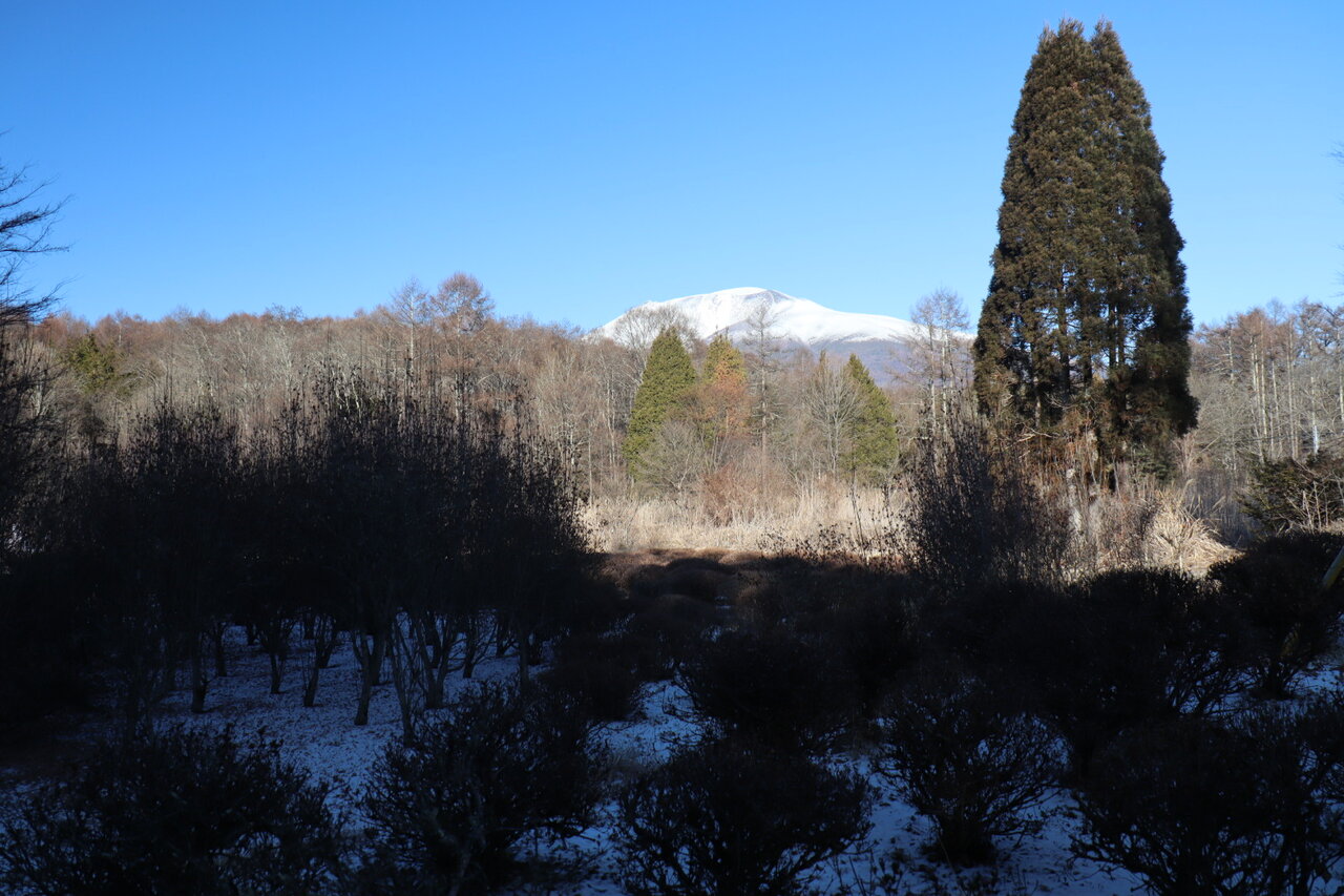 自宅から歩いて10分ほどのぽんきちの淺間ビューポイントに異変あり。細い町道沿いに植木畑があり、一角に人の丈ほどの盛り土があった。そこに登って浅間山を撮ると良いアングルとなったのだが、いつの間にか盛り土が崩され植木が植えられていた。かつてのこのビューポイントから撮った写真と比べると違いがよく分かる。周辺の木々も成長し低い位置から撮ると浅間山が隠れてしまう。これからは脚立を担いで撮影に行くしかないかなぁ、、。年末に軽井沢に降った雨は山頂近くでは雪となり、2日にさらに雪が降り積もりこの季節らしい浅間山となった。
