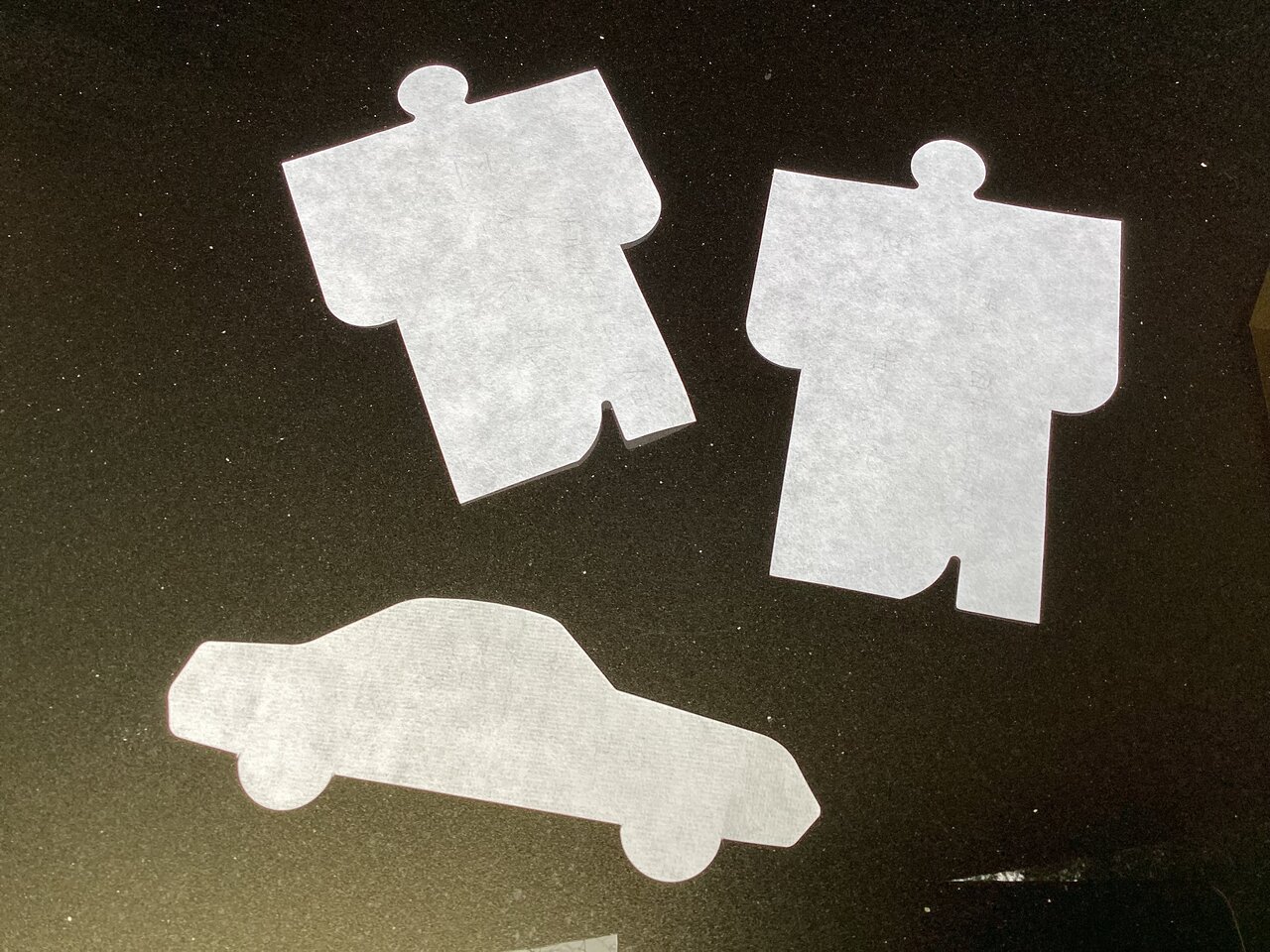 奈良・春日大社から毎年6月と12月に送られてくる形代(カタシロ)である。人形、車形、バイク形の3種があり、人形(ヒトガタ)には3回息を吹きかけ名前と生年月日を書き込む。車形は車の前後左右を形代で撫でて車のナンバーを書く。