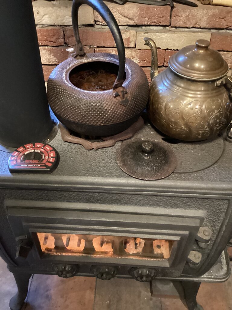 外は0度でも薪ストーブのおかげで室内は22度。快適〜。
