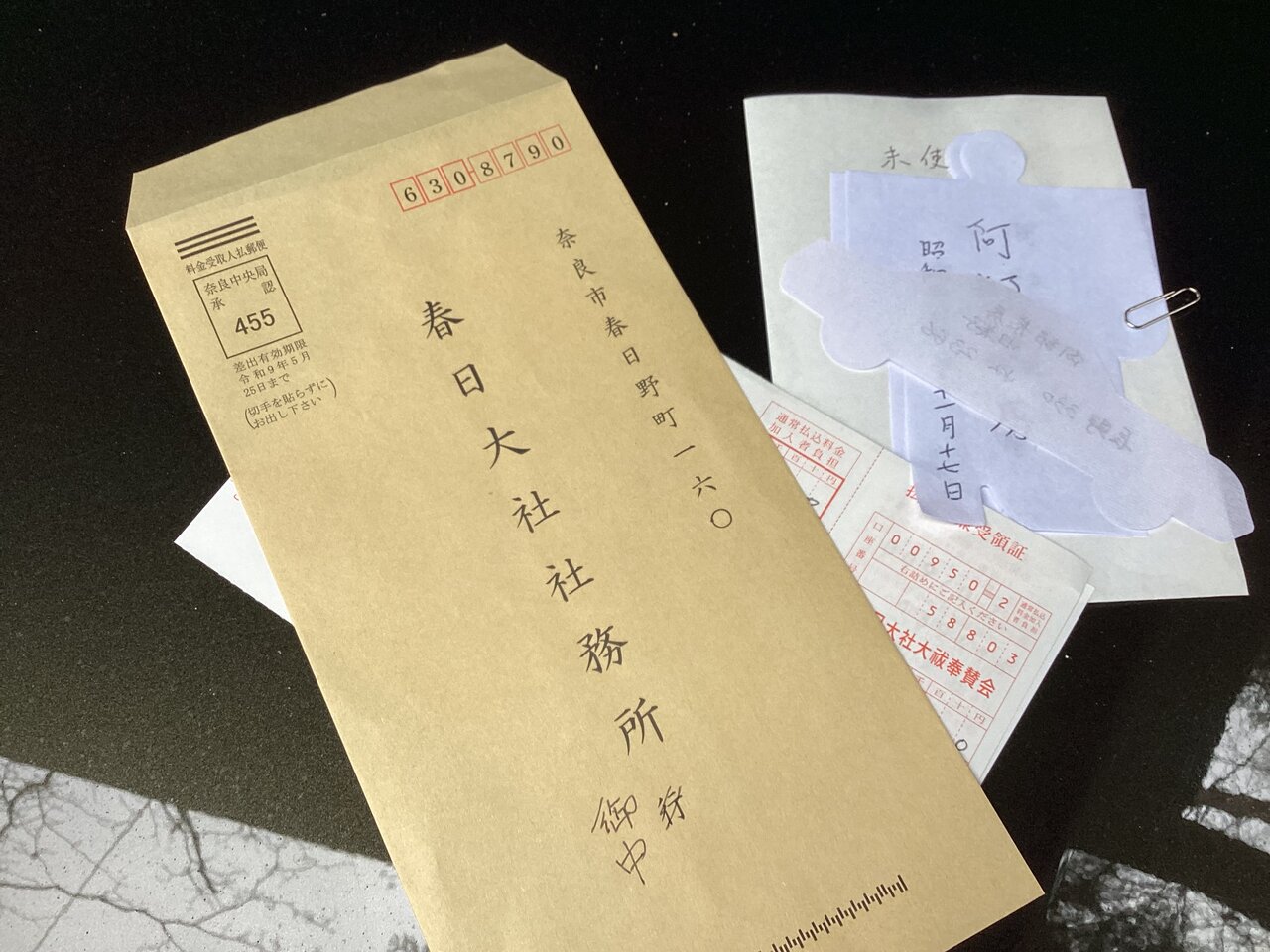 郵便局で御祈祷料を振込み控えとこの形代を返送する。