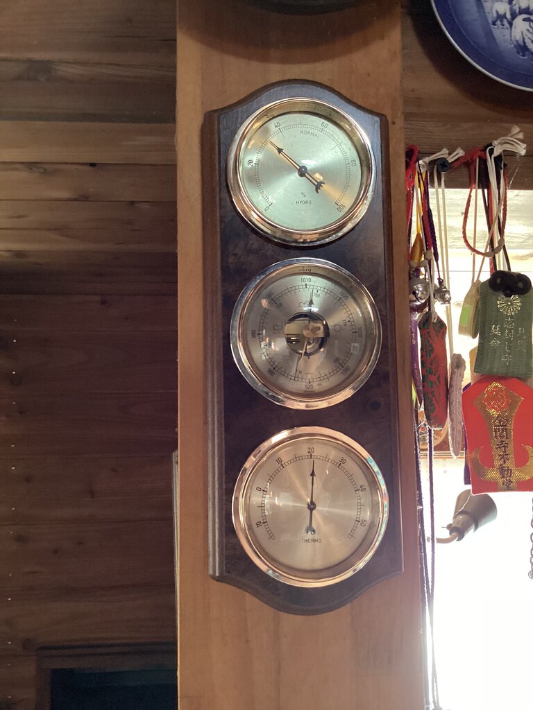 随分長いこと晴れの日が続いている。軽井沢は冬は晴れていても日中の気温が0度と言うことも多い。軽井沢を雪国と思っている人も多いようだが気候区分では明らかに太平洋側の気候。冬は雪は少なく晴天が続く。従って異常な乾燥状態となる。家の湿度・気圧・温度計の表示。よくわからないから拡大すると、、、。