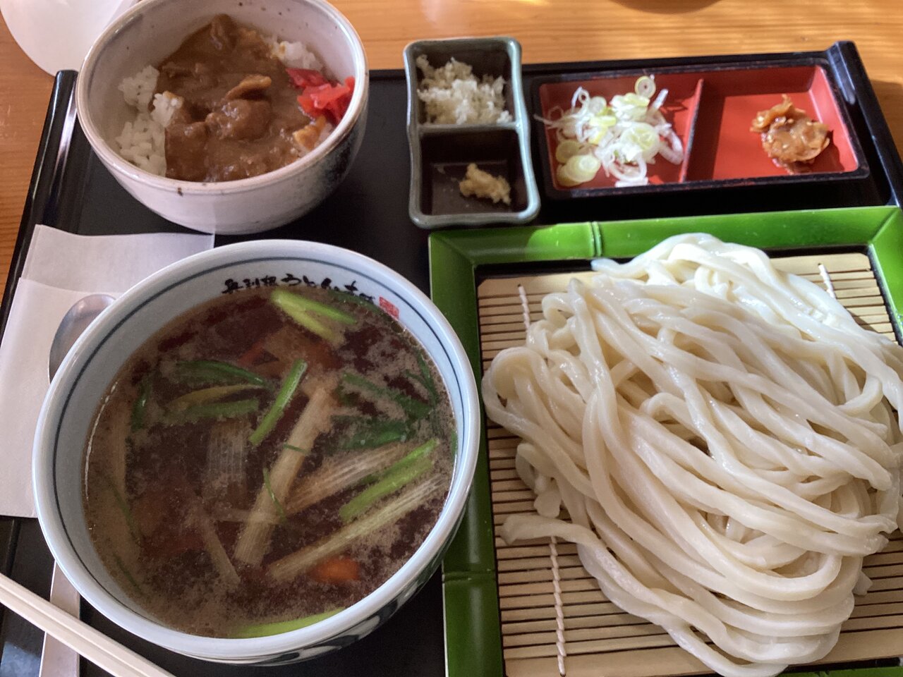 ランチにはミニカレーが付いてうどんおかわりし放題。昔なら3杯は喰らっただろうが、この日は旅館飯もあるので定量で我慢。