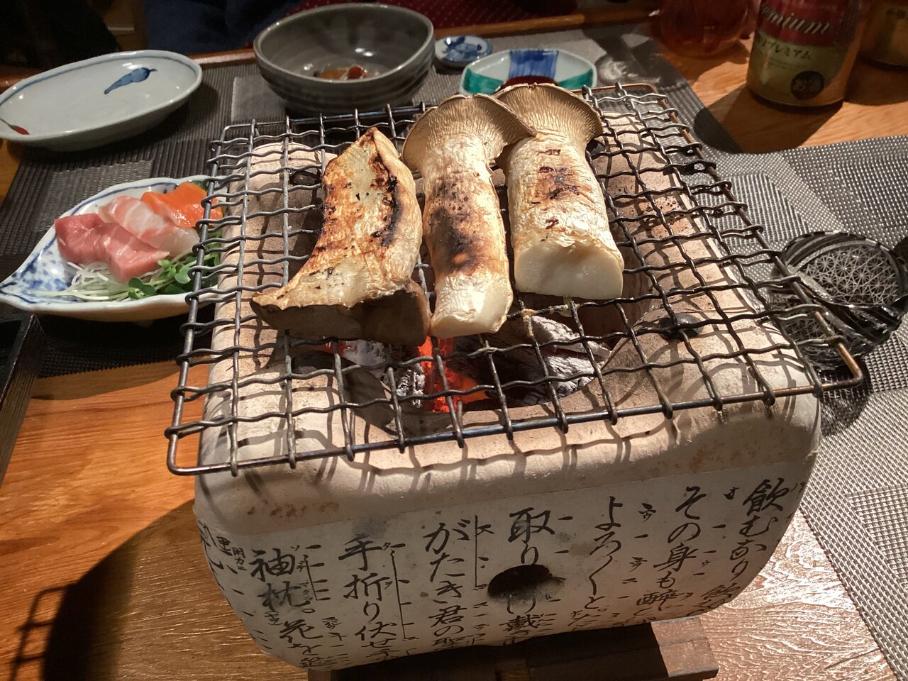 こんないいものがあったではないか。煙が出る肉や魚は焼かないがきのこやさつま揚げくらいなら全然平気。火は薪ストーブに炭を入れればすぐに着火。真冬に家の中でBBQ気分が味わえる。日本人的にはクリスマスは洋食のイメージがあるが、要は美味しいものを食べながら酒が飲めればなんだっていいのである。