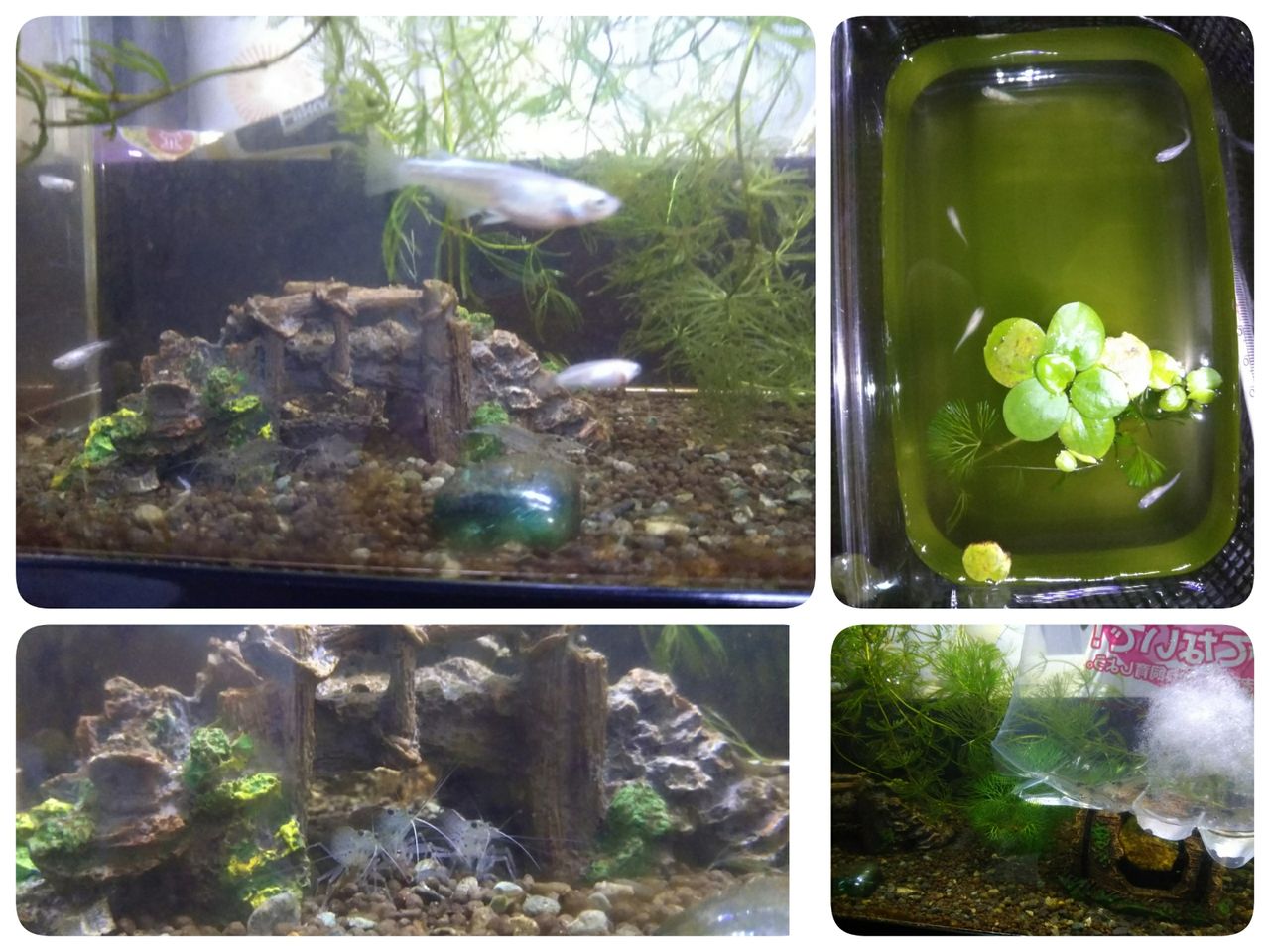 右上の緑の水は2か月の子たち