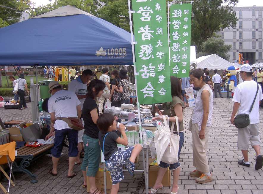 大学では雨が振ったりやんだりの、あいにくの天気の中でしたが大勢の人出がありました。私たち関東学院大学燦葉会経営者懇話会のテントでは、会員の皆様にご提供いただいた品物が好評の内に完売いたしました。