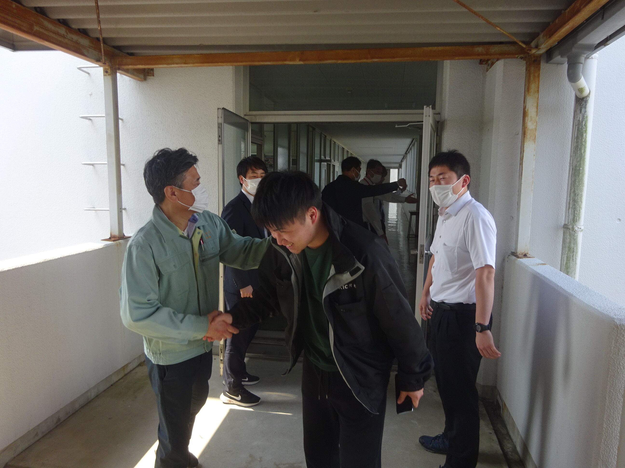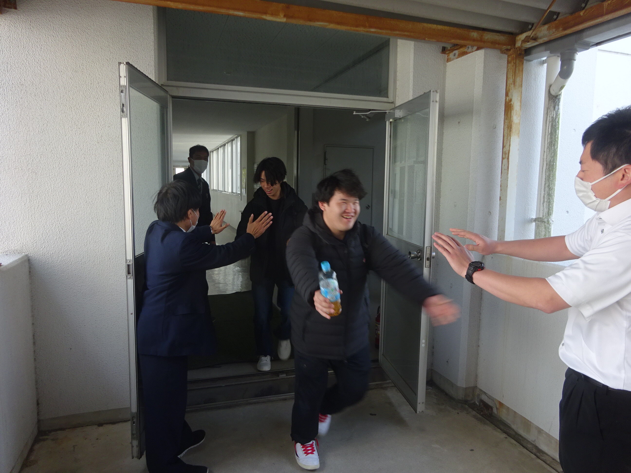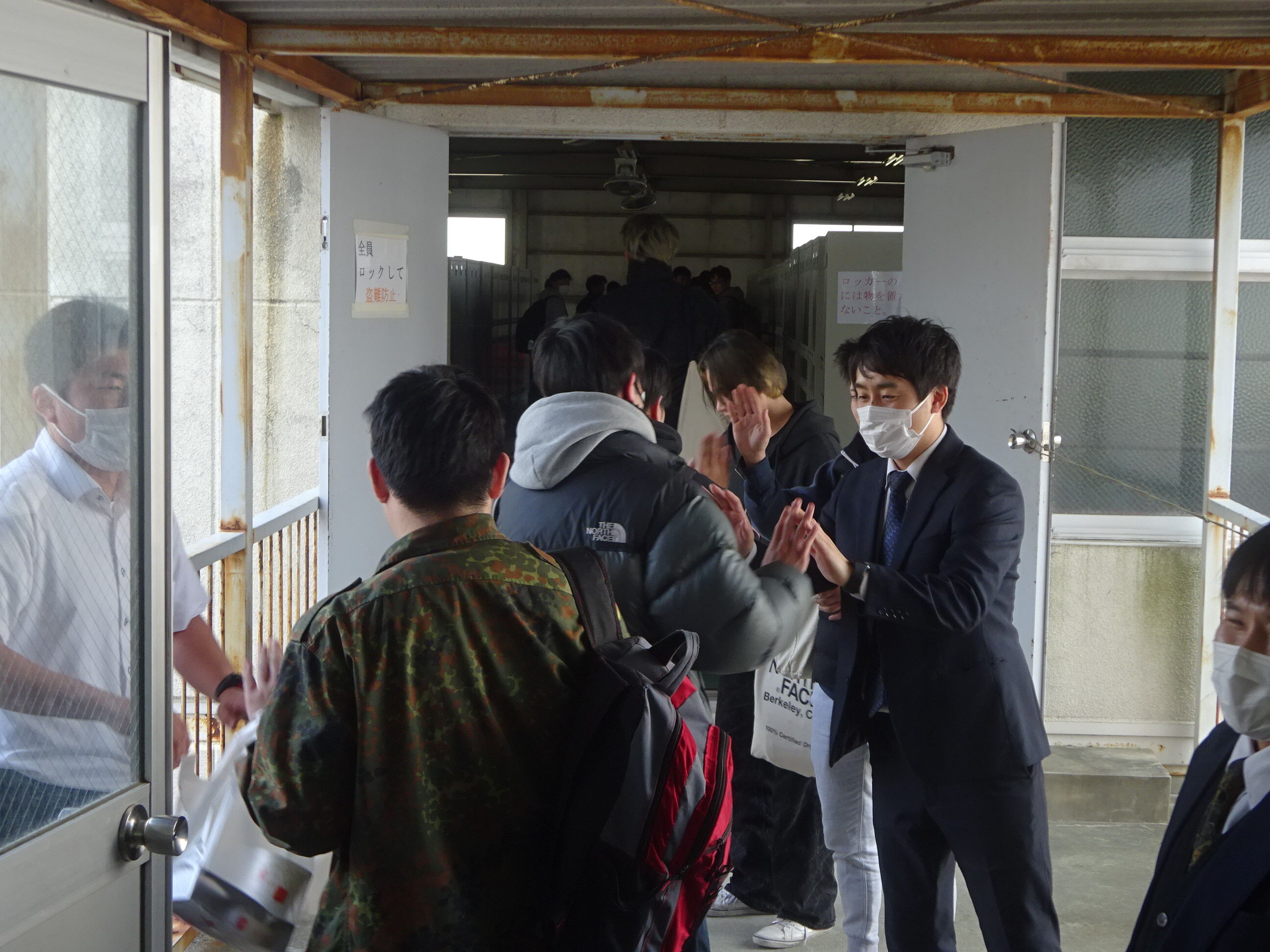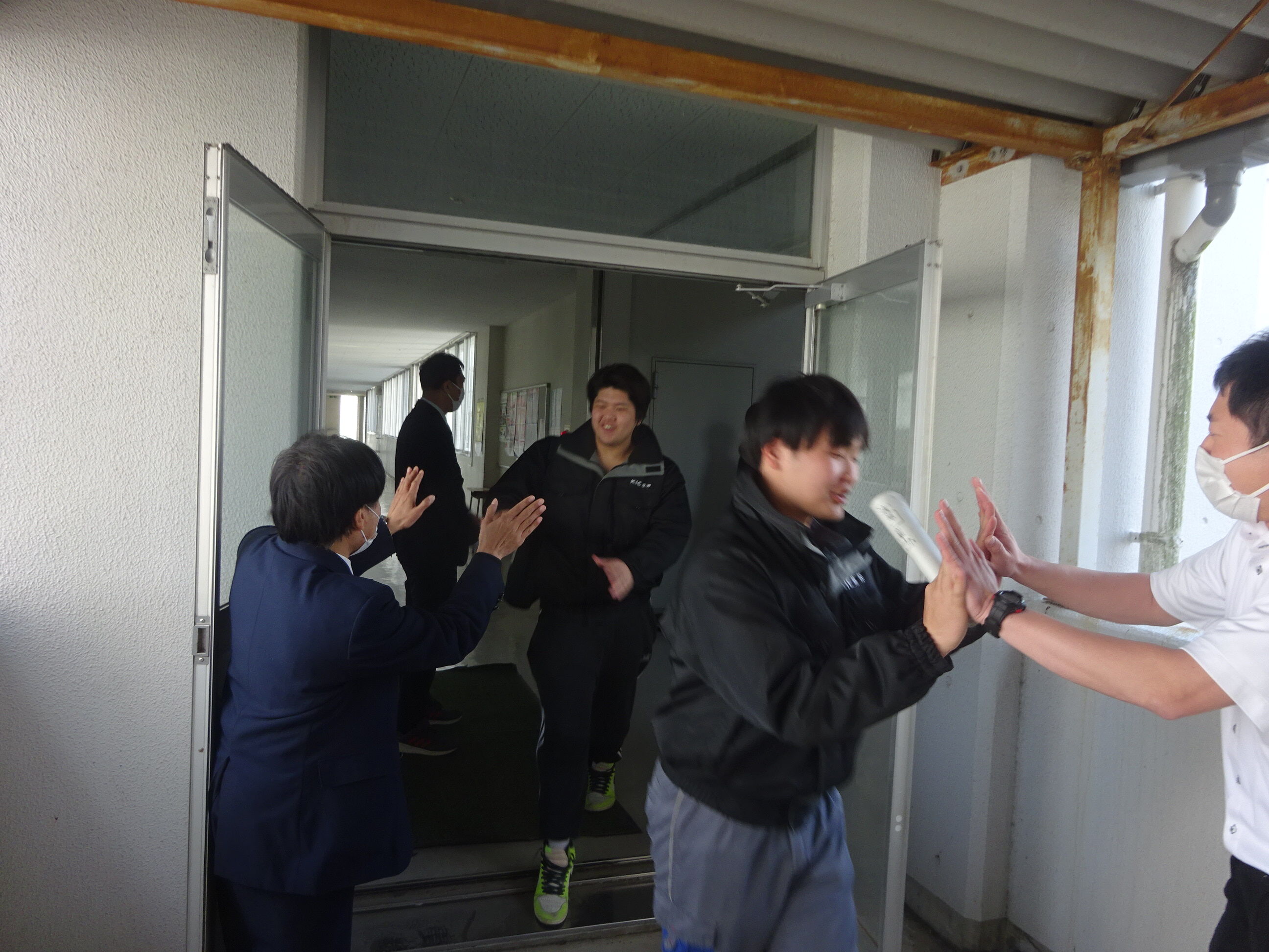 終了後は・・教員とのハイタッチで送り出します。。