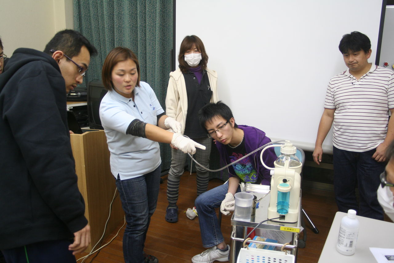 2011年12月27日 たんの吸引講習 介護職員等によるたんの吸引等の実施のための研修が始まり、いよいよ本格的に動き出した。しかしながら、現場の現状と制度のギャップを感じざるを得ない。法律により明確化されることで最終的に困ってしまうのは利用者ご本人ではないだろうか?我々が今やるべきは必要な人に、必要な状況の中で適切に行えるよう準備すること。毎月第4金曜日に開催される職員全体会の一部の時間でわずかながらの講習会を行いました。今後の制度の動向、研修の進捗状況をしっかり見極め、少しずつ定期的に続けていきたい。