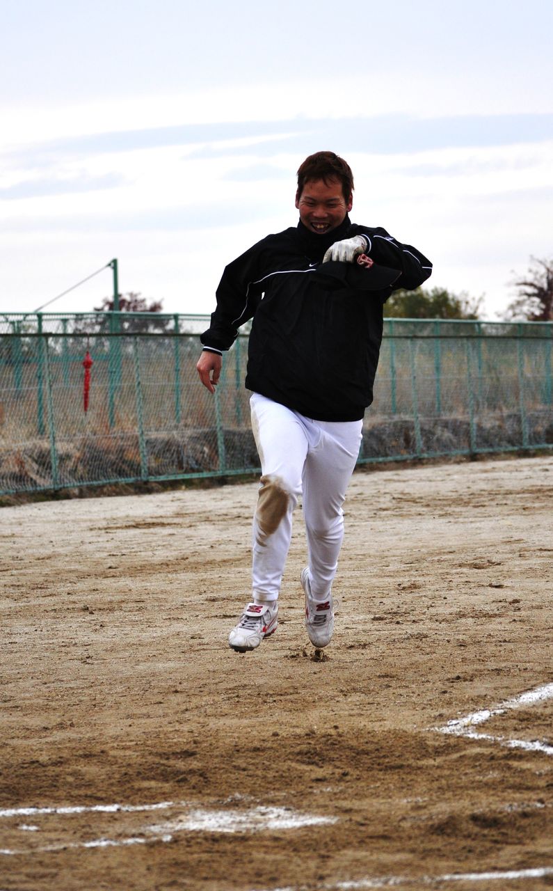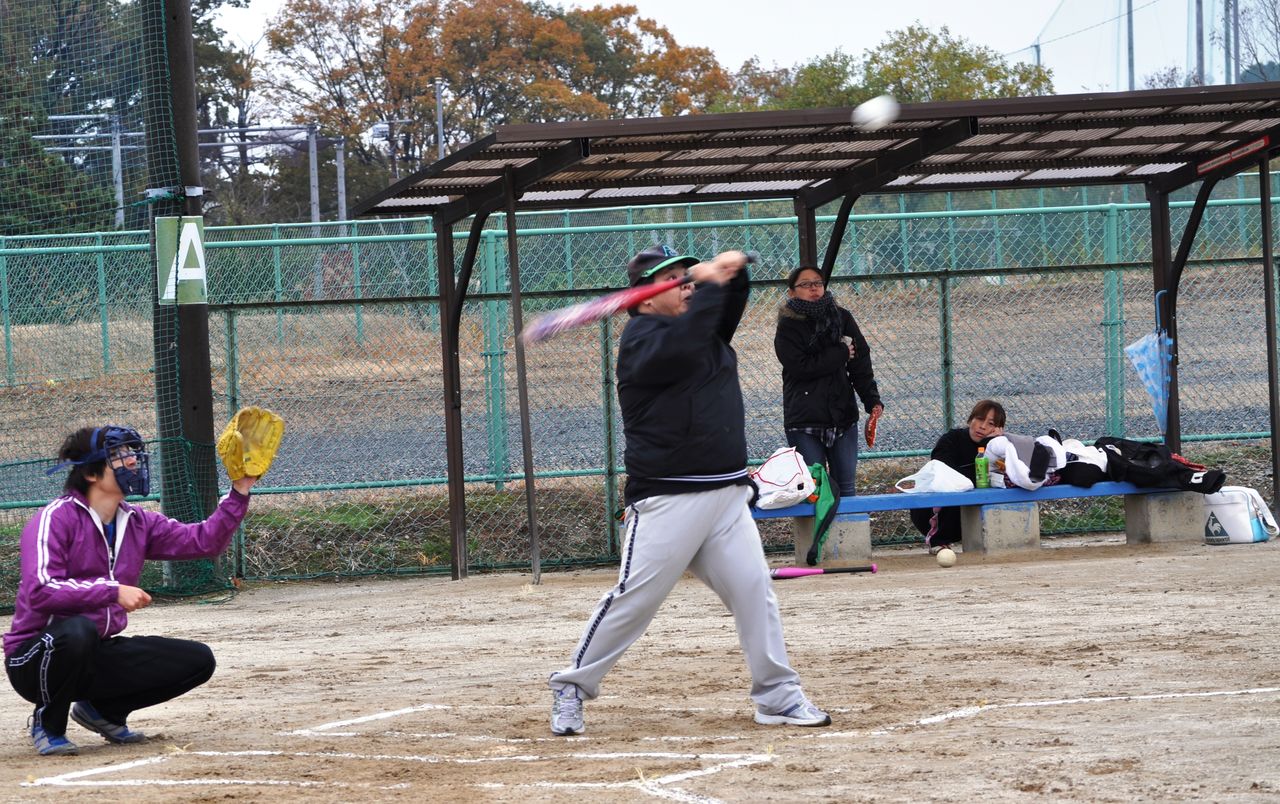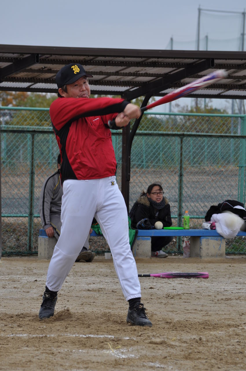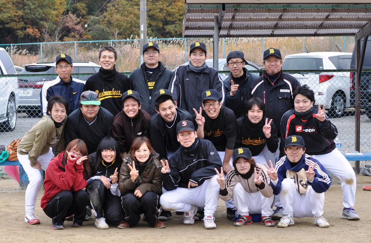2012年11月26日 ソフトボール大会 2012.11.23決戦の時先発マウンドにはこの男(2回までは任せとけ!)全3試合緩急のフル投球そして主砲宮本 打球の行方は!? 結果は笑顔のまんま 新たなメンバーも加わりましたが、そのボール高すぎやろ!?きまぐれのお・ま・け某N氏参加ということで雨の心配もありましたが奇跡的に雨も上がり、見事結果は準優勝!※注) さて、先回4三振という鮮烈なデビューを果たしたこの男↓今年はどうやら様子が違うようです。・・・ ”っぽい”ぞ!