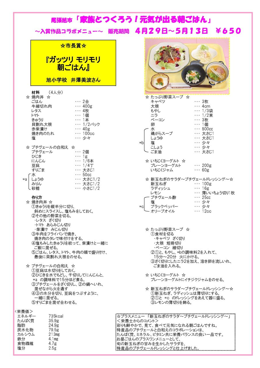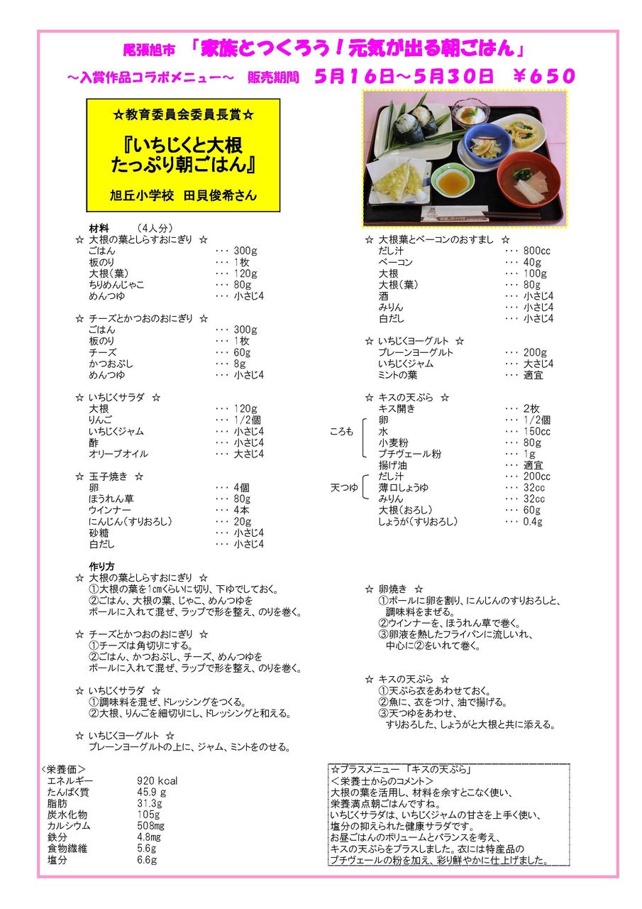 尾張旭市健康メニュー 家族とつくろう!元気が出る朝ごはん