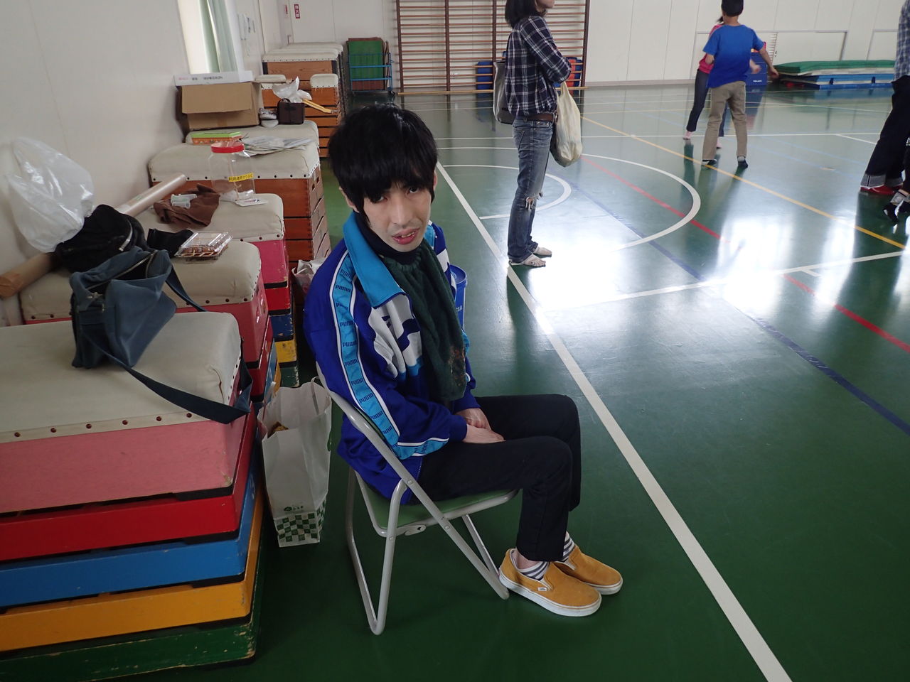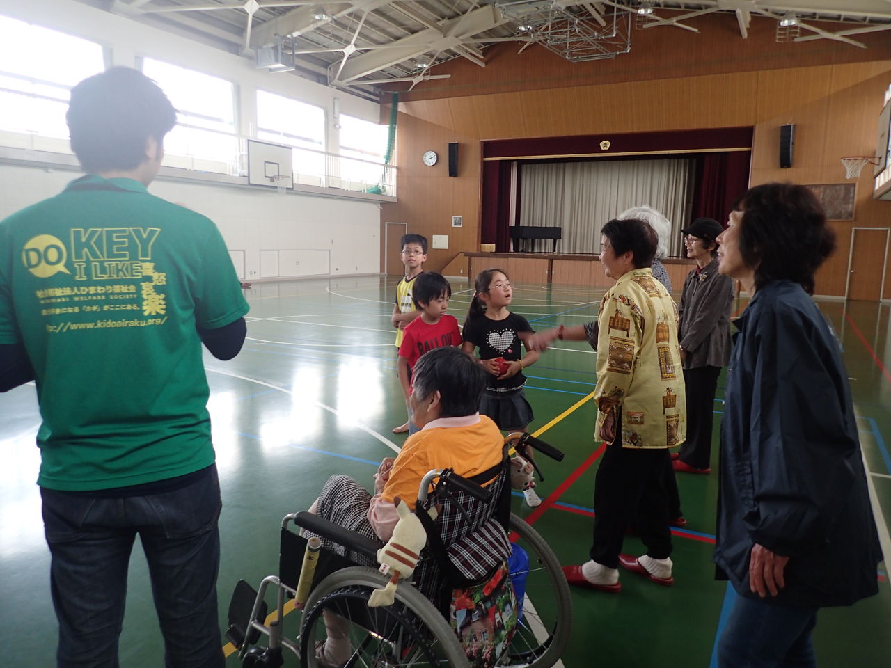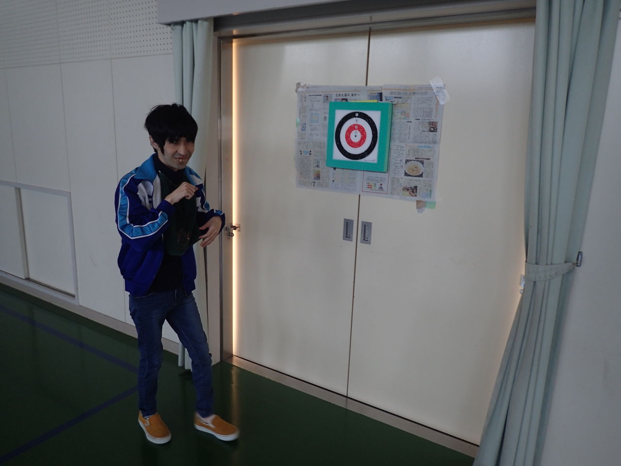 貴船中学校の体育館にて”スポーツ吹き矢”と”ボッチャ”をお客さんと一緒に楽しみました!