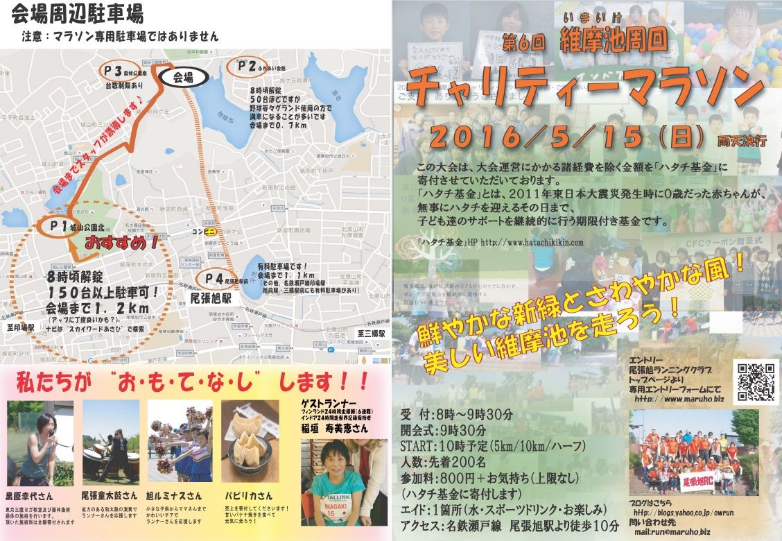 5月15日(日)に尾張旭市維摩池にて行われるチャリティーマラソンにひまわりからも参加することになりました。