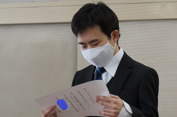 成人の誓いです。逞しく、力強いメッセージを誓って頂きました。