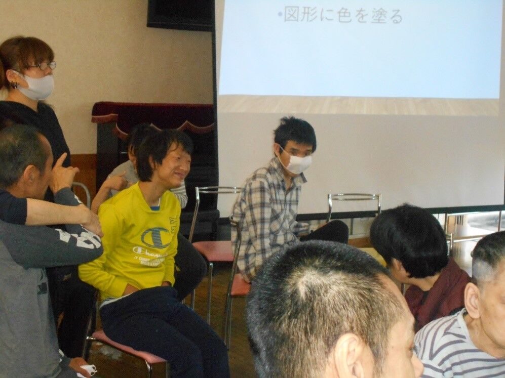 感染症対策として3密を防ぐため、例年であればひまわり内で開催しておりましたが、今回は尾張旭市文化会館の広い会場で換気や距離感に配慮して実施しました。