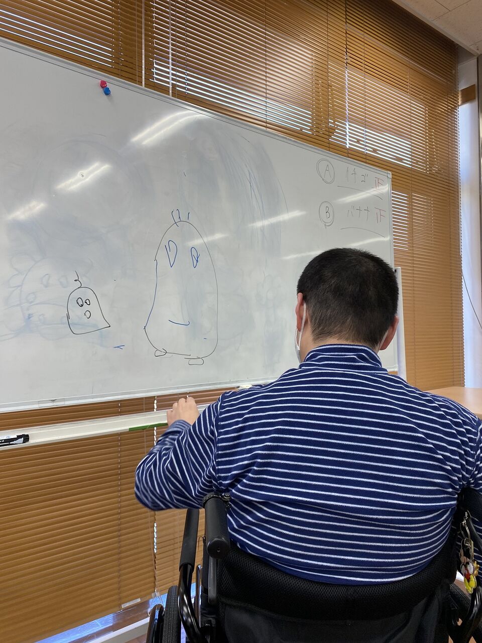今回はA班の利用者みんなで何が食べたいか話し合いチーズケーキに決まりました。