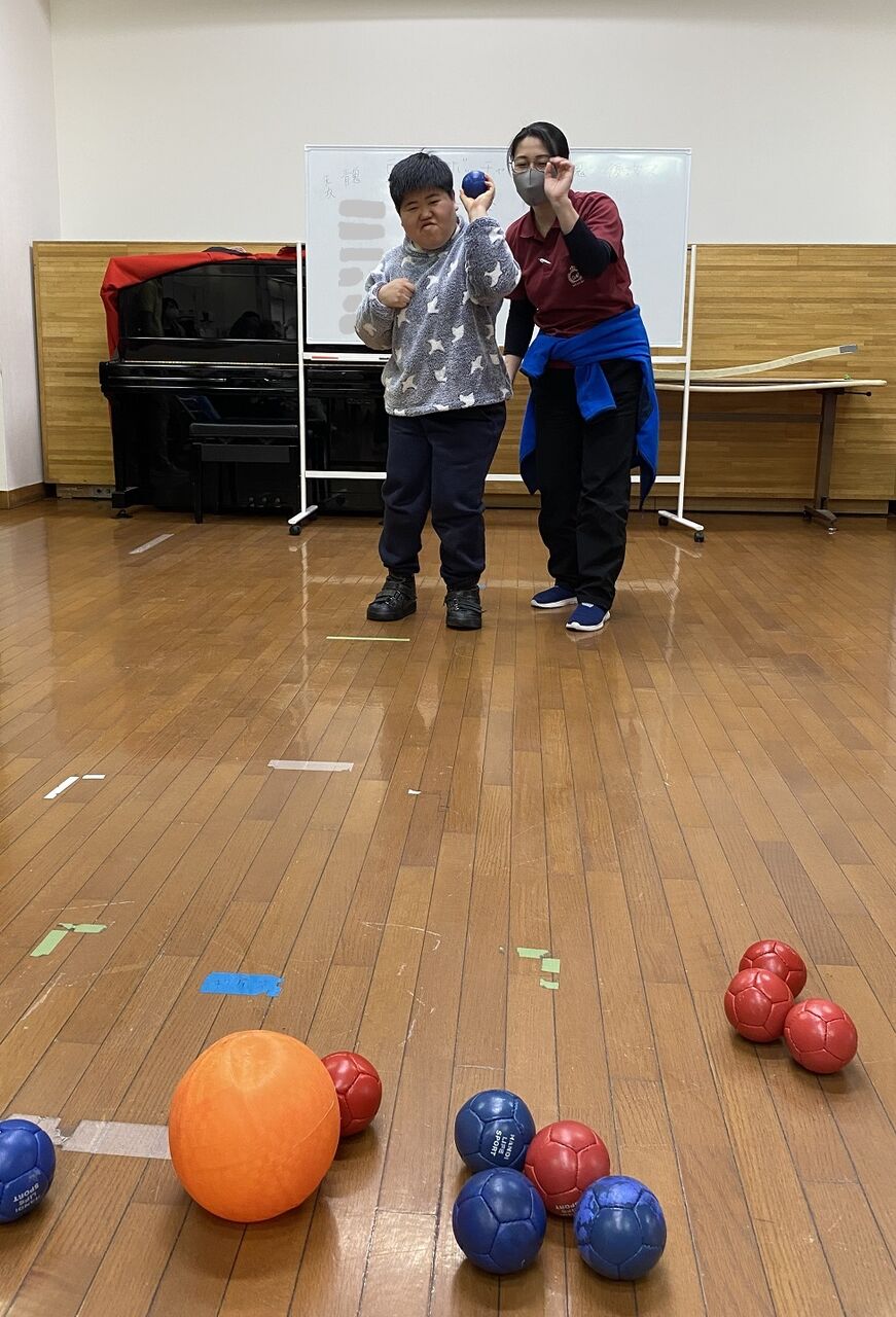 ボッチャとは・・・ヨーロッパ生まれの重度脳性麻痺者もしくは同程度の四肢重度機能障害者のために考案されたスポーツで、パラリンピックの正式種目です。