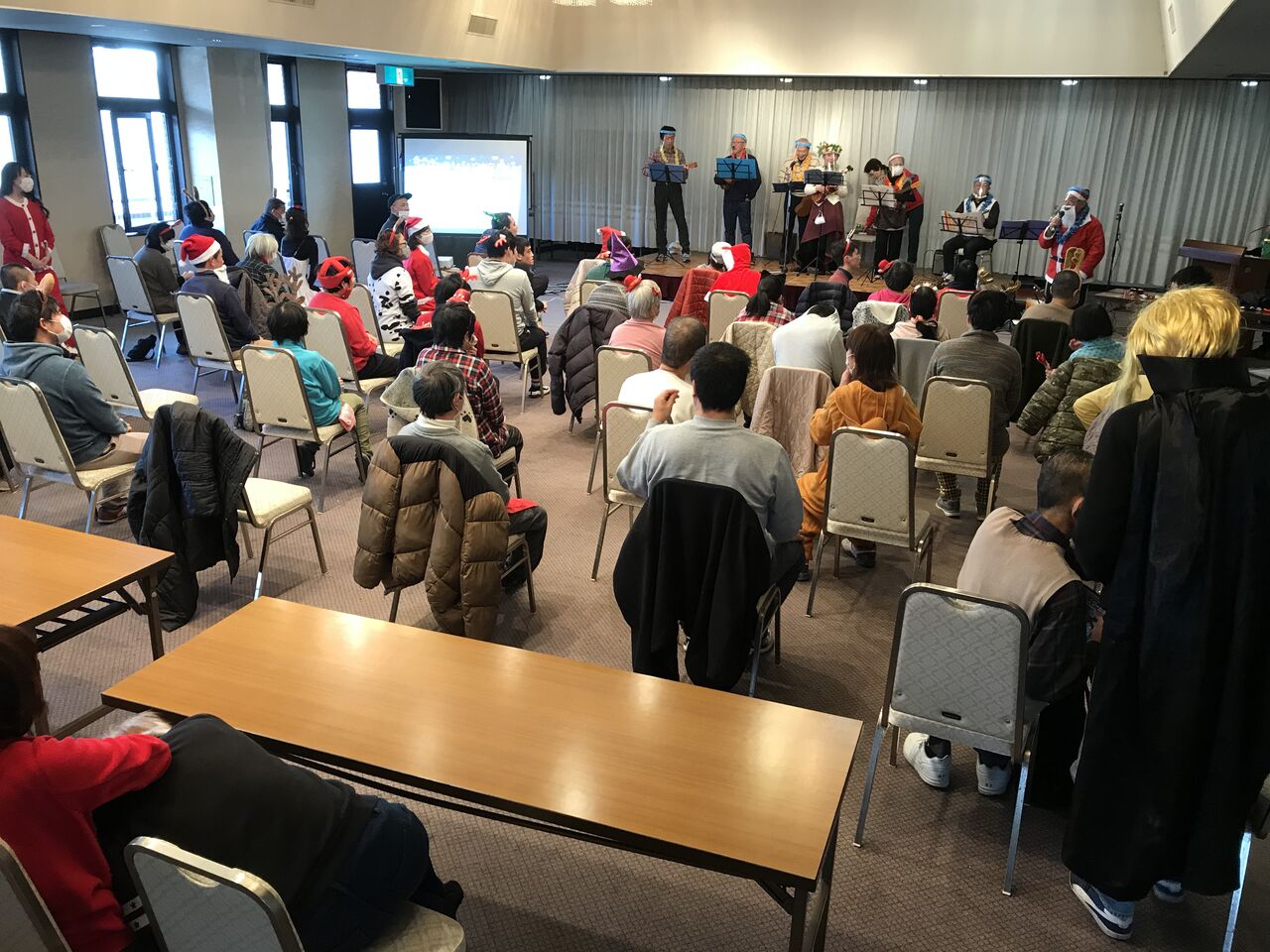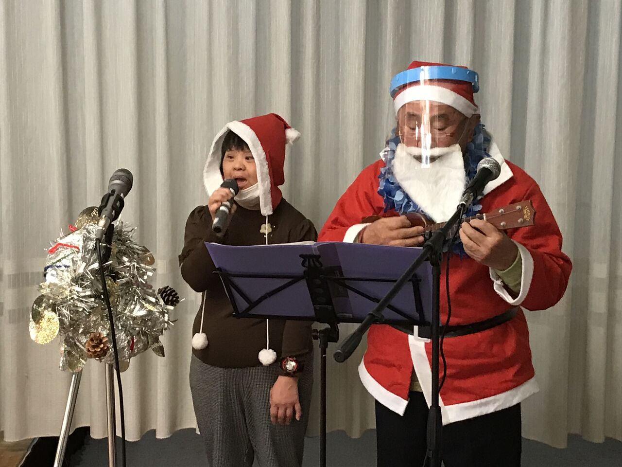 昨年も参加して頂いた「ハッピーハワイアンズ」の皆様にはクリスマスソングを演奏して頂き、途中から利用者様も参加され、とっても楽しい時間になりました。