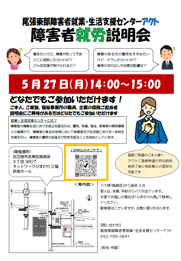平素より尾張東部障害者就業・生活支援センターアクト事業の運営にご理解、ご協力をいただきまして誠にありがとうございます。