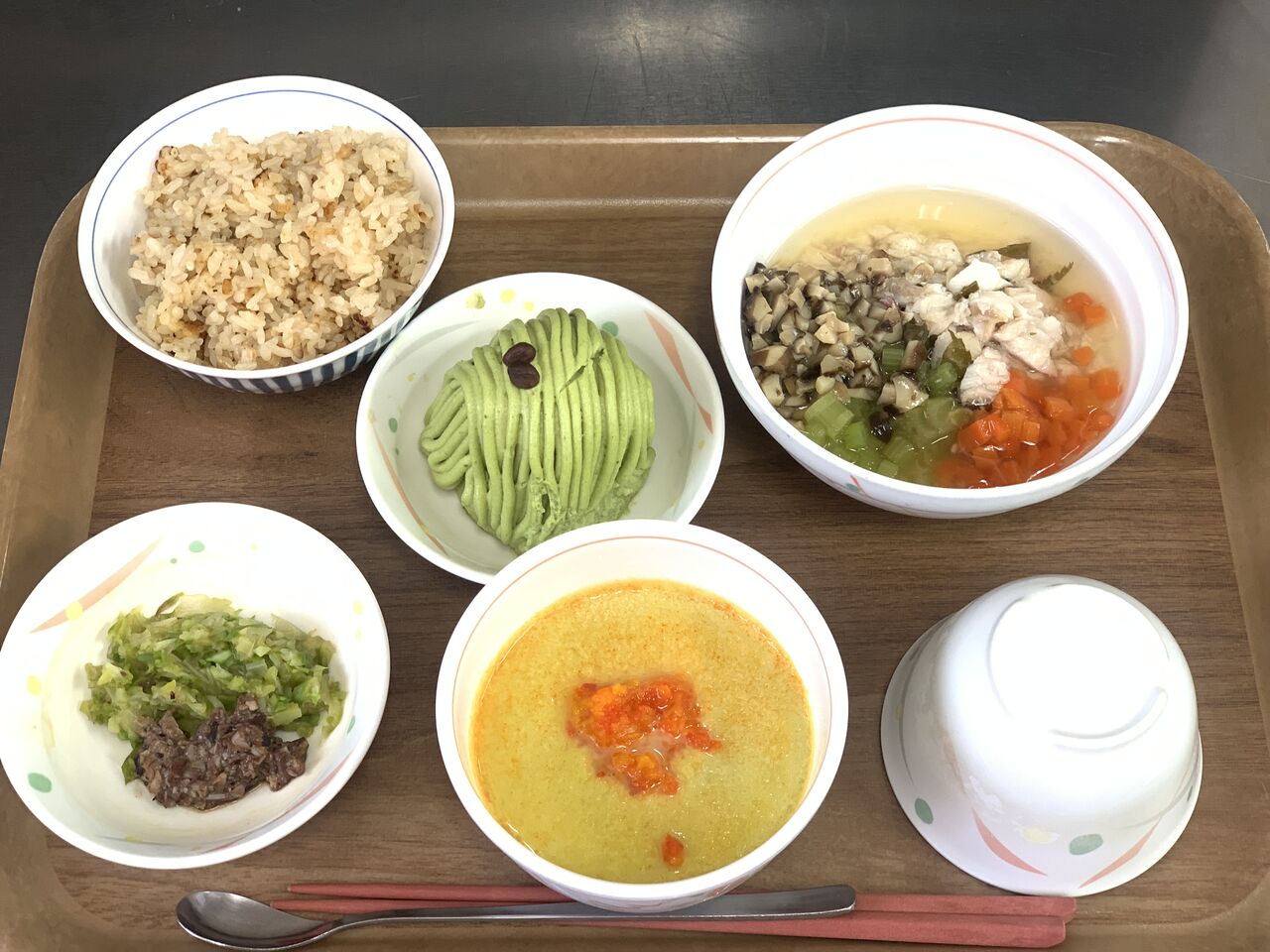 お弁当のメニューは、ごはん、エビフライ、枝豆とトマトのマリネ、フルーツを予定しています。