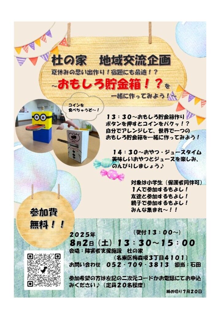 名東区地域活動支援センターかたつむり🌻7月予定表🐌