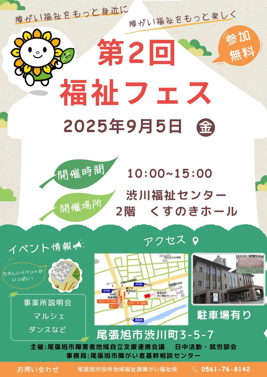 「障がい福祉をもっと身近に、もっと楽しく」を掲げて尾張旭市の障がい福祉事業所が参加します。