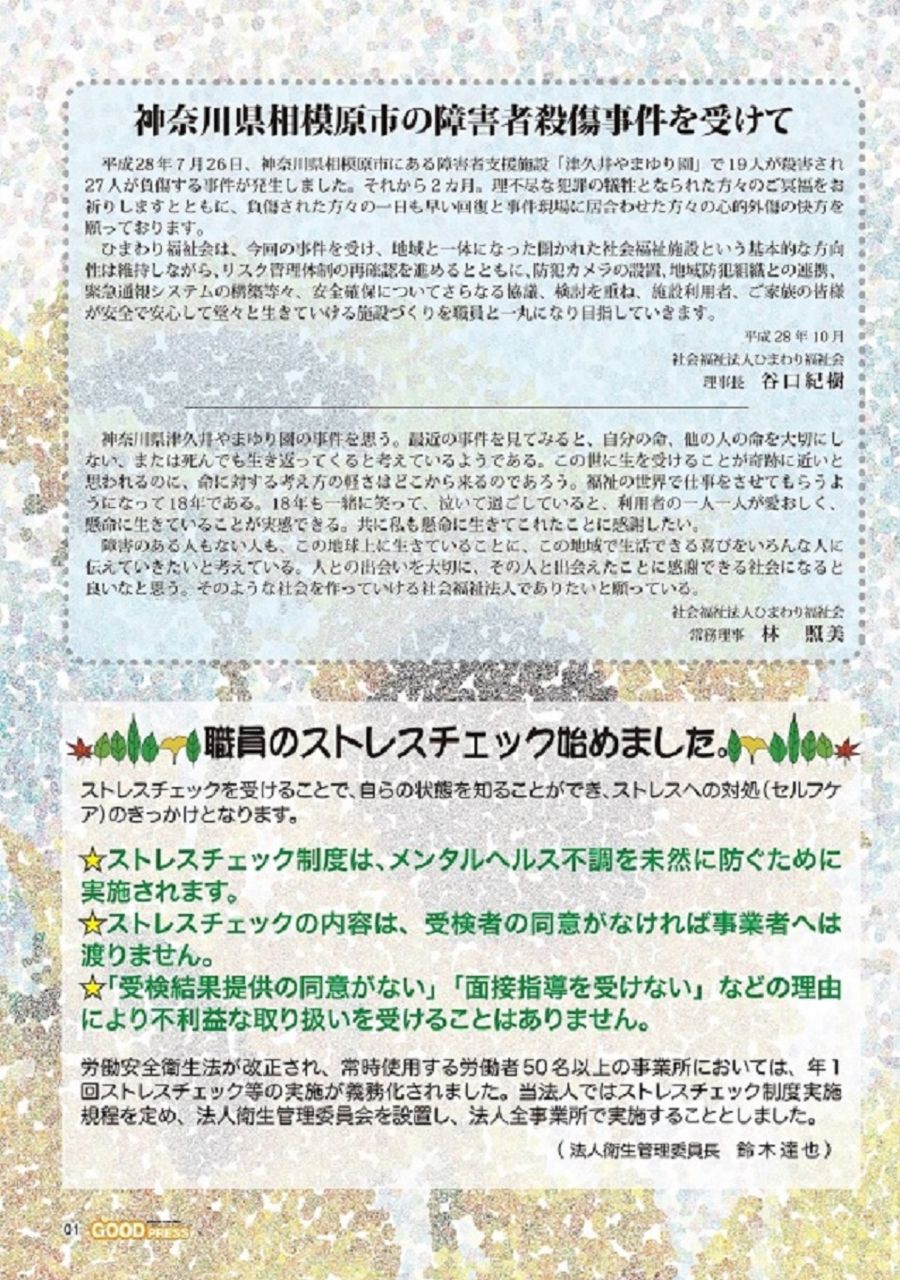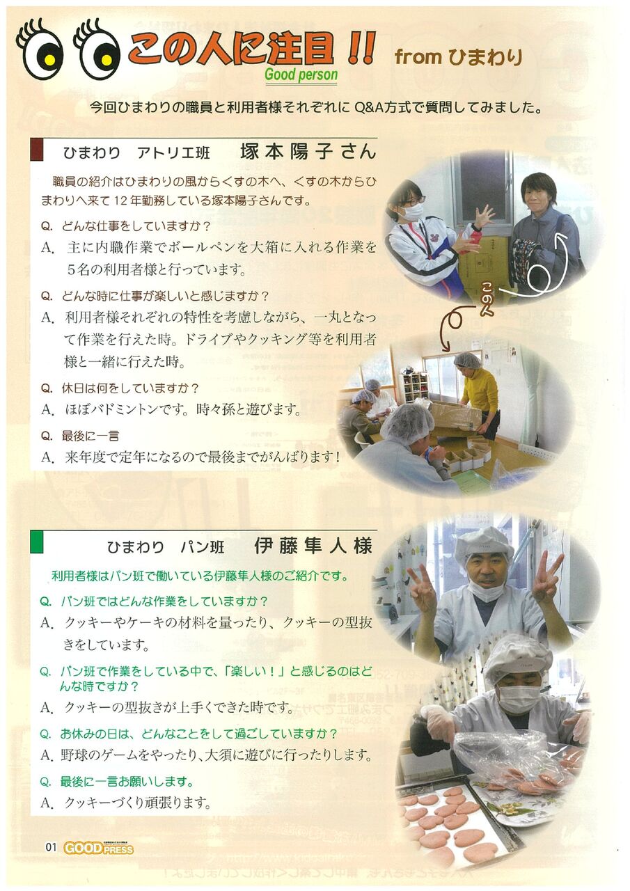 障害のある方のその人らしい生活や就労を目指して活動中。 そんな社会福祉法人ひまわり福祉会のGOOD PRESSをお届けします。