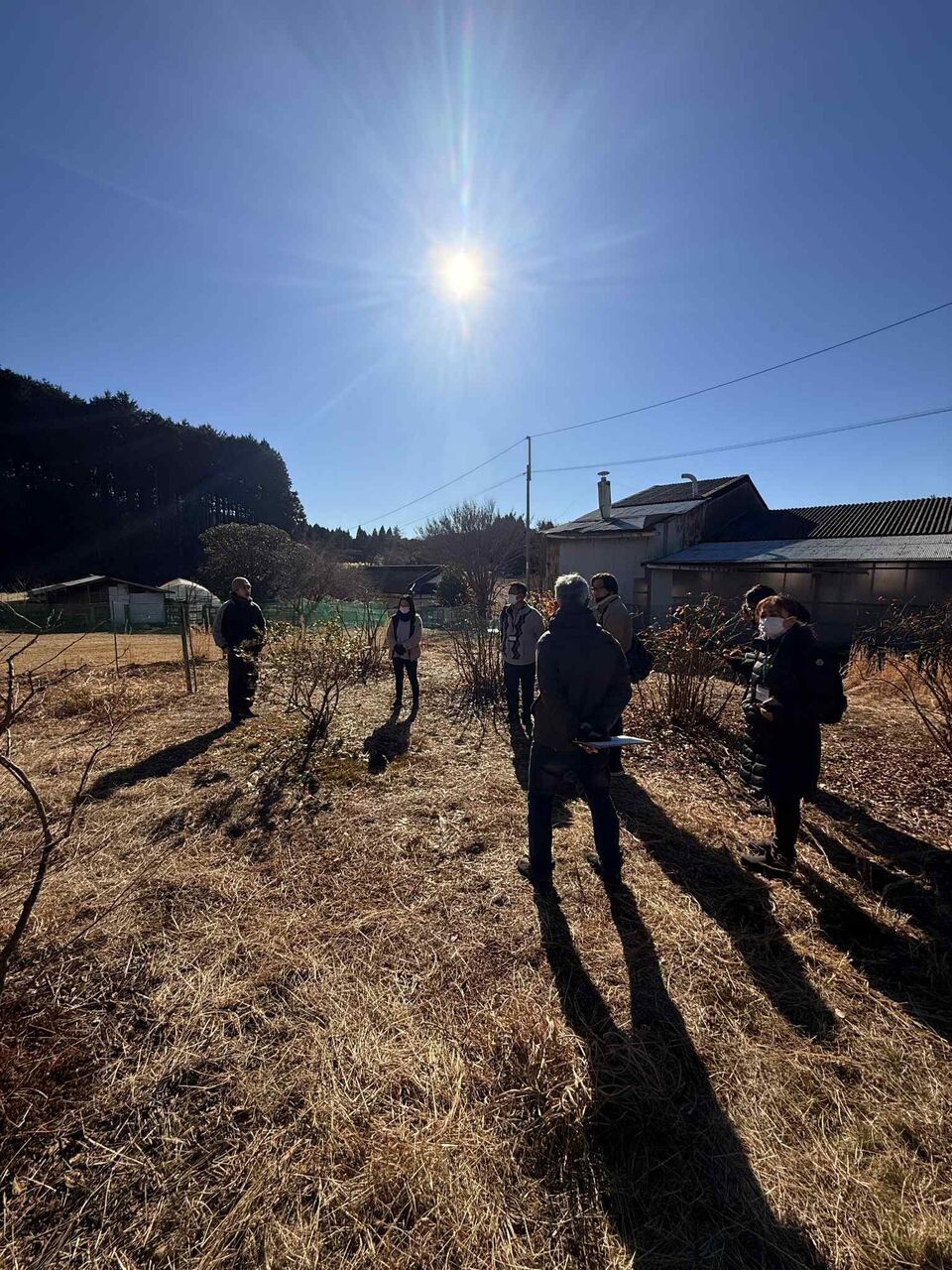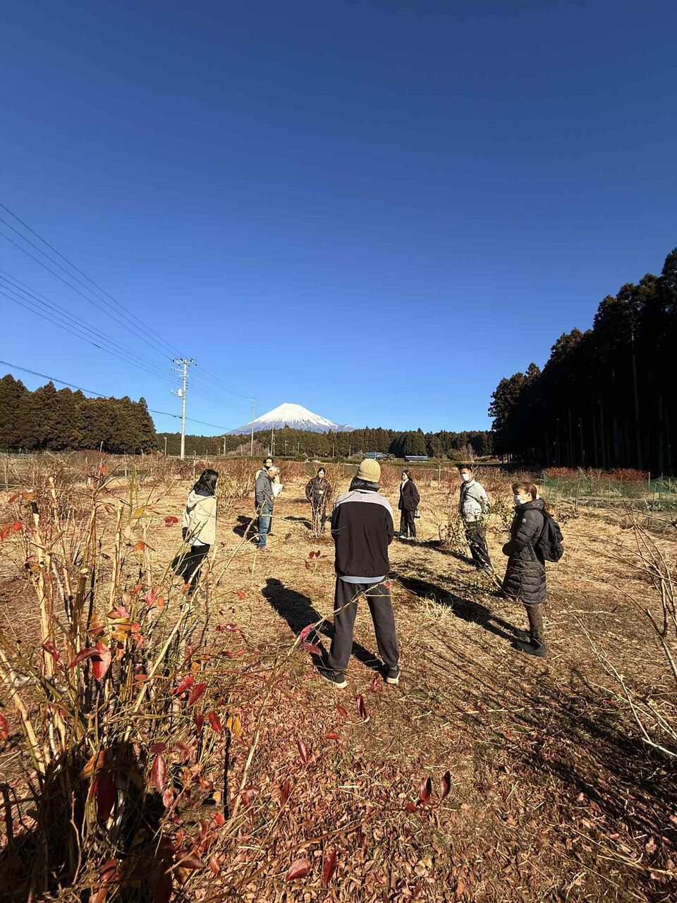 くすの木東の畑は地主により異物除去・伐根工事が施工され、その管理を依頼されたが、圃場の条件が悪く作付けに至らなかった。水の流入が避けられない状況下で適する作物の相談を進めていたところ、ブルーベリーが候補としてあがり、静岡県富士市スマイルベリーファーム富士事業所へ見学に行く運びとなった。これをくすの木の研修として位置づけ、職員7人と尾張旭市の自然栽培農業者の細田修平氏とともに現地へ向かった。