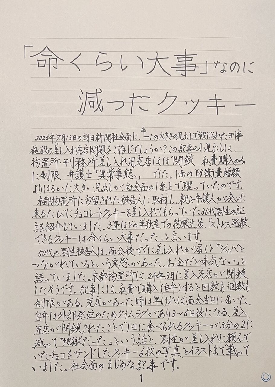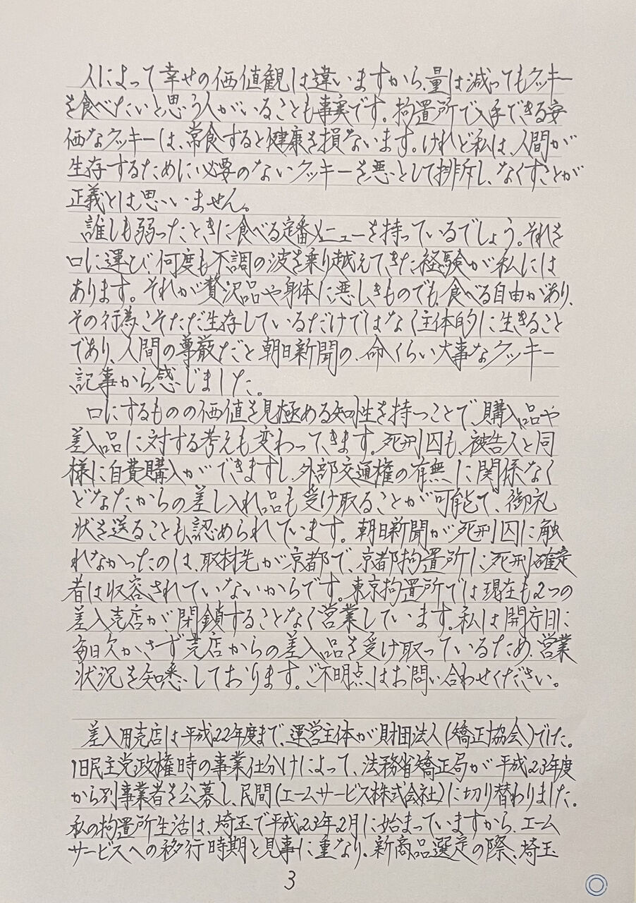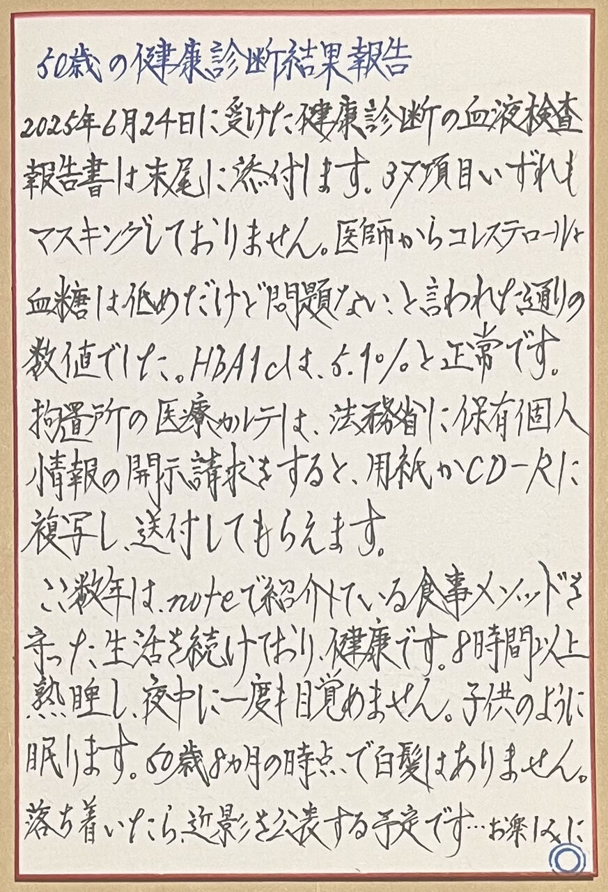内容は、東京拘置所の実態(東拘ガイド)と、そこで健康に生き抜くための食事と運動のメソッドの紹介です。東拘ガイドは読み切りのトピック、メソッドについては連載として書き綴っていくつもりです。