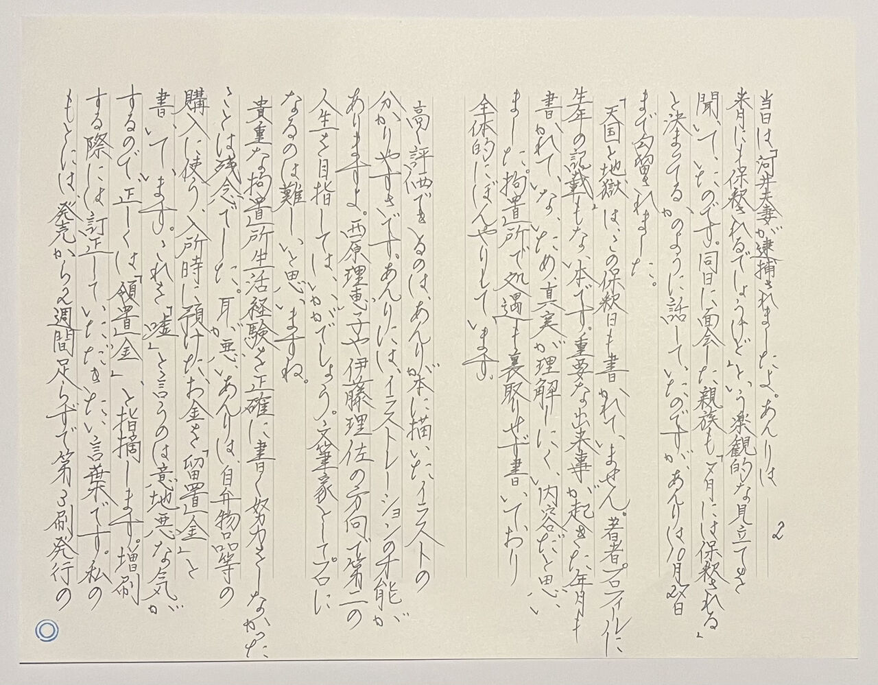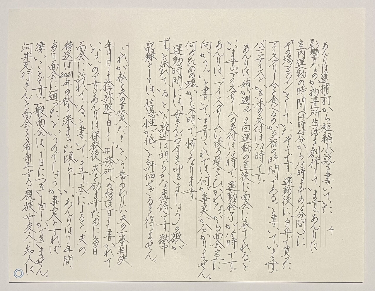 「無知の涙」は女性と知り合う前に出版されました。永山さんは1980年12月に婚姻し、1986年4月に離婚が成立しています。1990年の確定時も1997年の執行時も彼は独身でした。夫婦仲が円満だったのは3年足らずだった、と永山さんの元弁護人から聞きました。妻が創作活動をサポートしていたのは束の間。それが真実です。