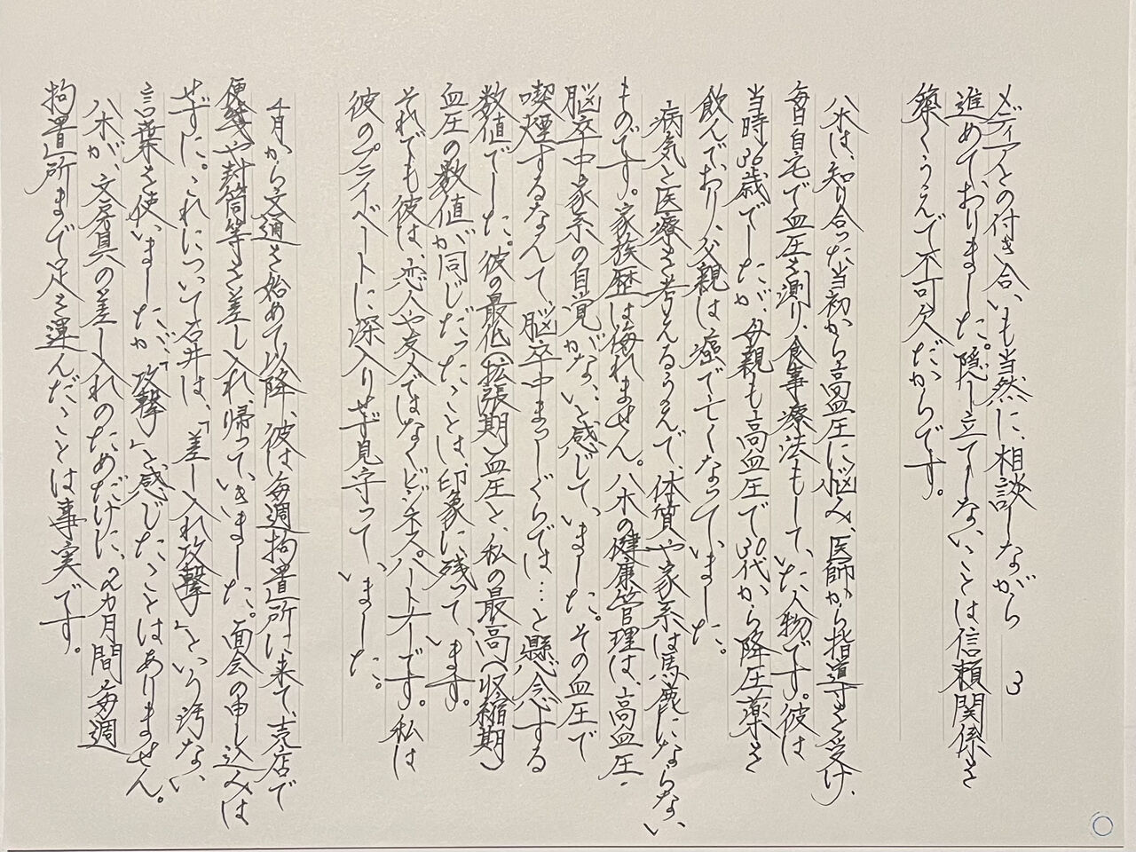 病院から自宅の固定電話にかけ続け、ようやく繋がったのは午後8時過ぎでした。息子が病院に到着したのは午前零時過ぎです。安藤さんは息子に、私のことを「介護のボランティアで来てくれている。外に出るとき一緒に付いてきてもらっている」と話しました。