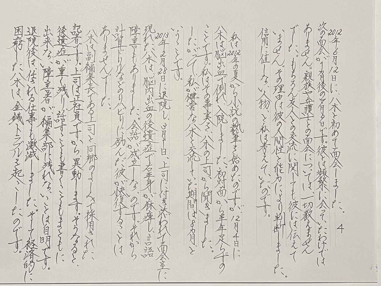 安藤さんは救命救急センターで精密検査を受けていました。私は廊下で待つしかありません。看護師から「入院の書類には2名の署名が必要です。安藤さんのご家族について教えていただけますか?」と訊かれて困りました。