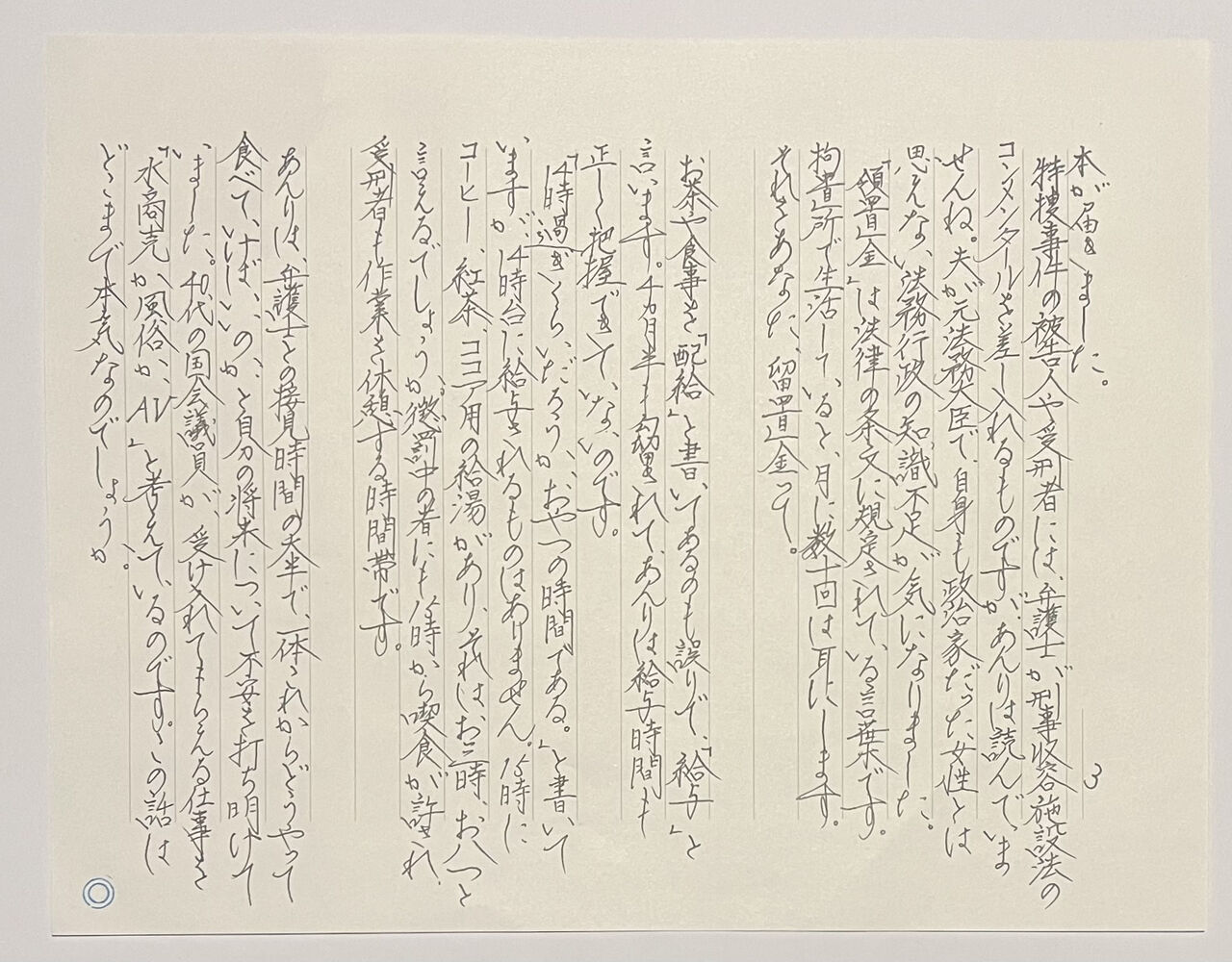 連載については、刑事弁護人を受任される弁護士の先生方にも読んでいただきたいと思っています。弁護士で刑事施設の処遇実態を詳しく知る人は少なく、東拘ガイドで公表している行政文書の存在すら知らない弁護士がほとんどだからです。