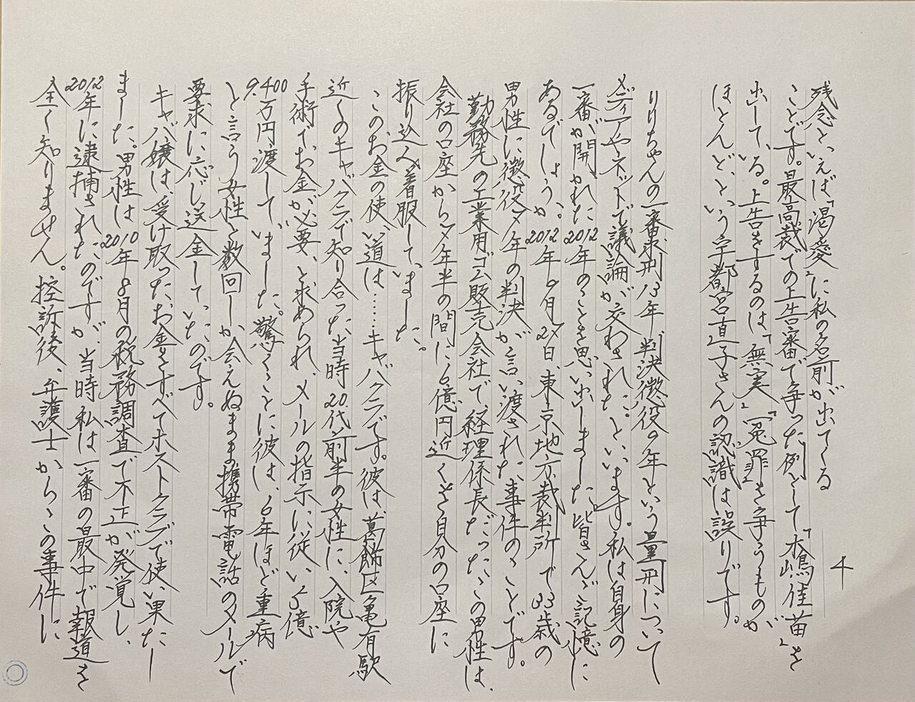 山田さんと私に肉体関係がなかったことは、彼が法廷で証言しています。ところが好色家の石井は、山田さんとの間にも性的エピソードを挿入しました。当時私が住んでいた池袋のマンションで初めて会った日、「別れ際にキスをして帰った」と。 虚偽です。山田さんも私も否定していることを、石井だけがした、と言う。この池袋のマンションについて石井が書いたことは全部嘘です。1割も真実がなくびっくりしました。「風俗街にも近いこの場所」と書かれましたが、東京芸術劇場の向かい、公園と立教大学そばの静かなエリアに建つマンションです。石井は最終回で「木嶋佳苗は東京拘置所に勾留されている」と書きました。「勾留」は未決にしか使わない用語です。文藝春秋社に校閲部はないのかもしれませんね。