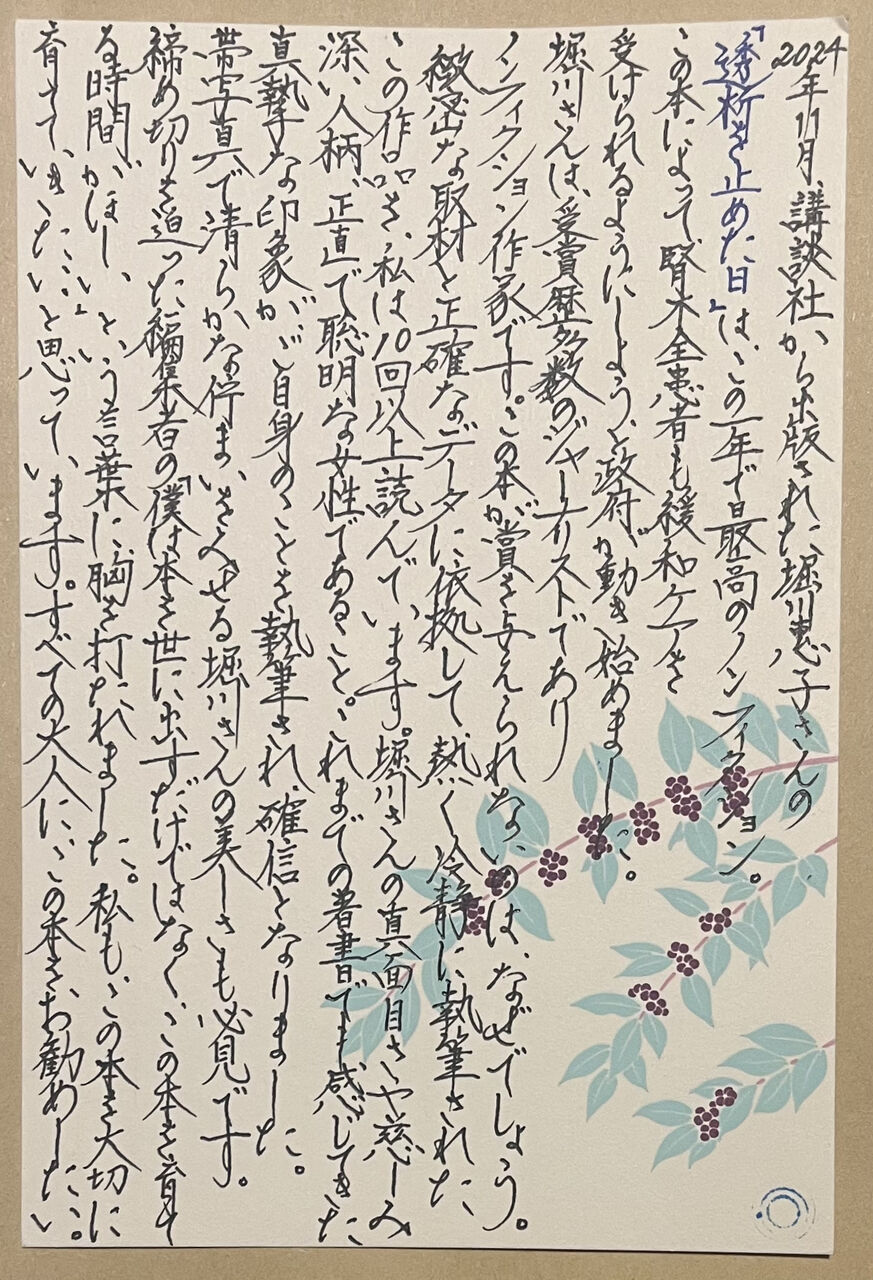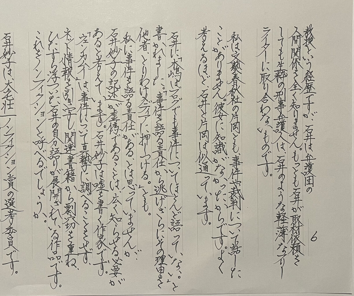 弁護士と「ウェンカムイ」について協議しているなかで最も恐れていたのは、文藝春秋社の経費で2022年から2025年にわたり噂話収集した石井妙子の行為が、「丹念な取材」と評されることでした。