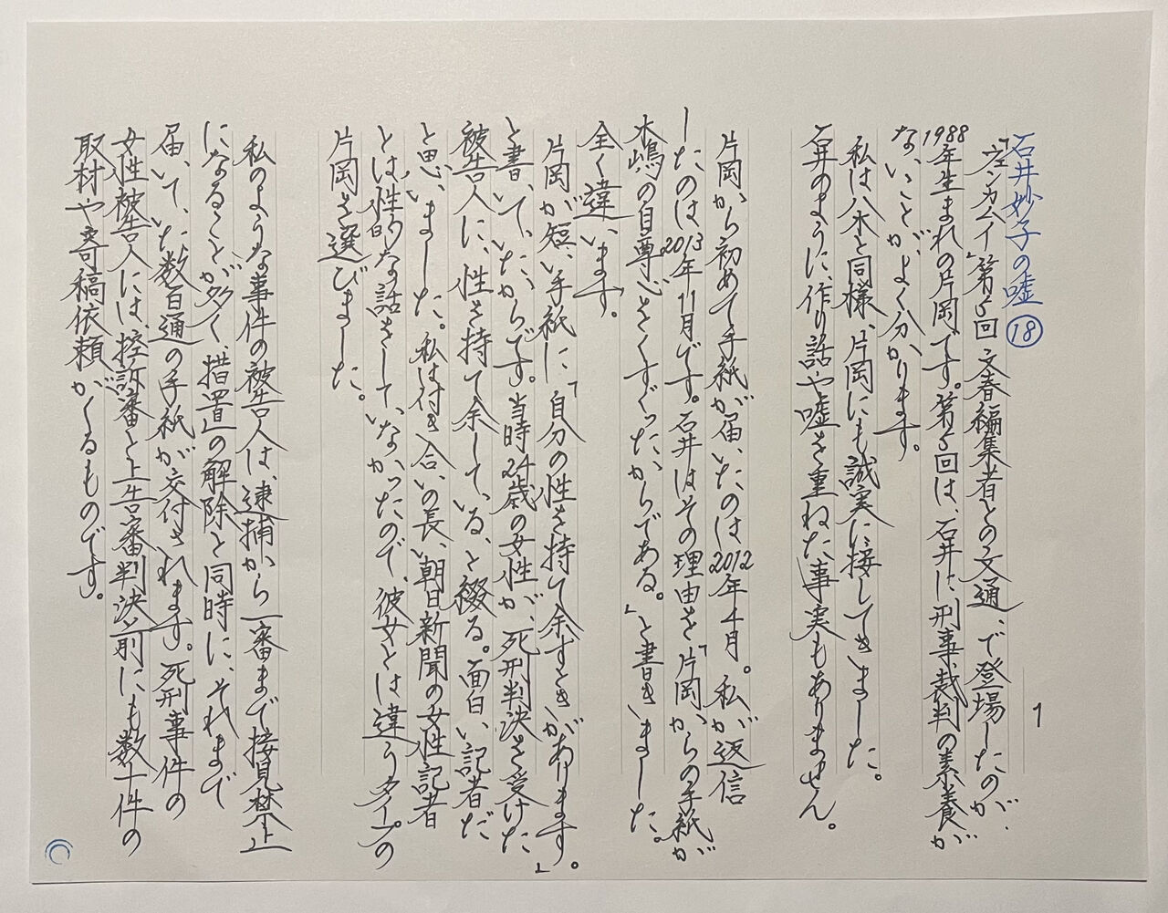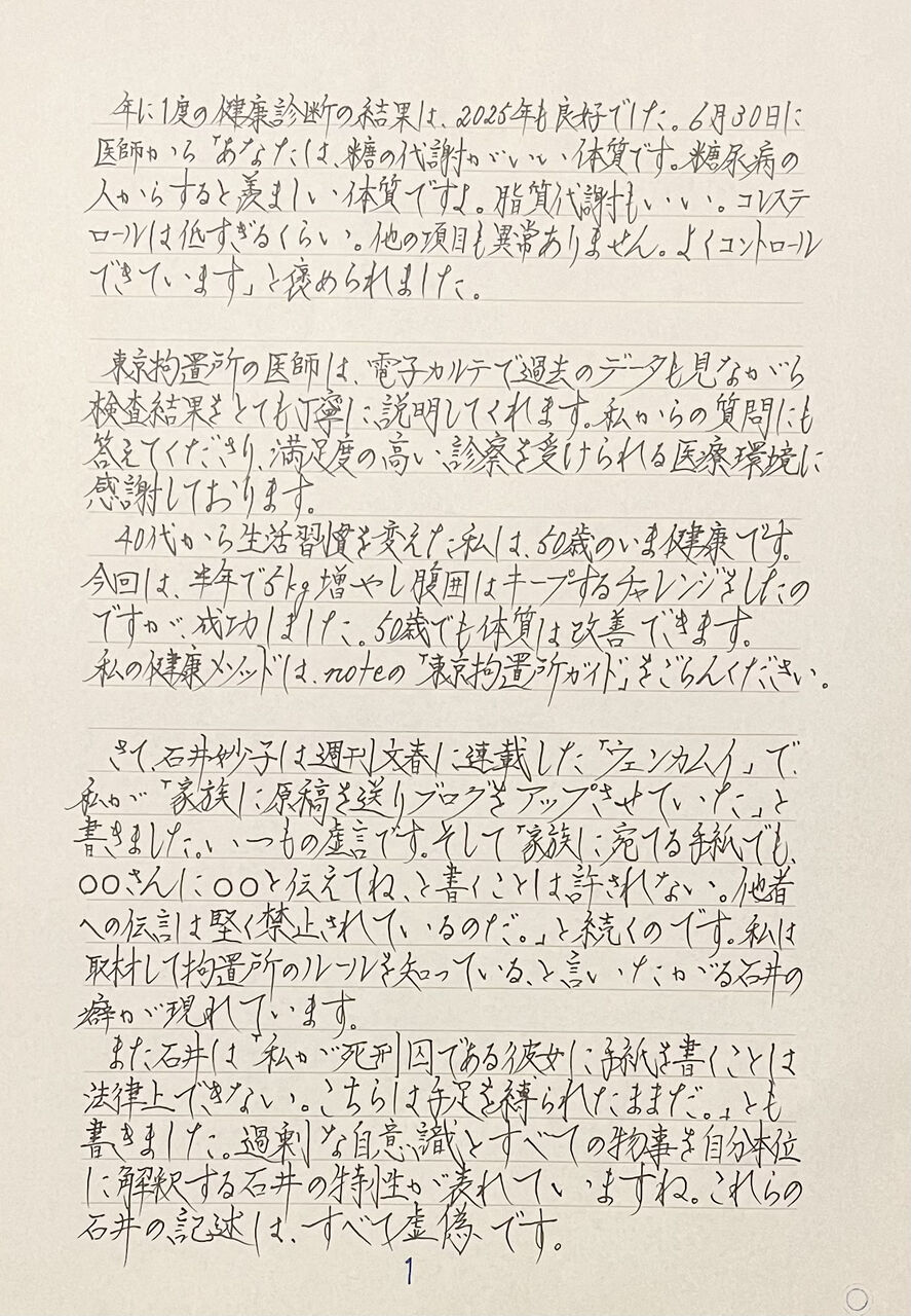 首都圏連続不審死事件で、刑事訴訟記録の分量が一番多いのは安藤さんです。石井の虚偽記述は、刑訴記録で、全て証明できます。法律の規定によりここで公表ができないことが残念でなりません。9割嘘でお馴染みの石井は、安藤さんが「バイアグラまで病院で処方してもらっている」と書きました。100%の嘘です。私の裁判で「バイアグラ」という単語が出たことはありません。