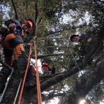 最近モミの木の伐採の依頼があります。モミも戦後から70年以上が経ち、かなり大きくなり手がつけれなくなってきています。今回は、山の頂上にある社のすぐ横にある大きなモミの木の枝の伐採です。せっかくなのでチームみんなに登ってもらいました。 ...