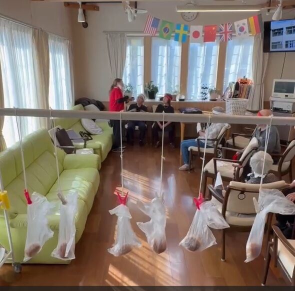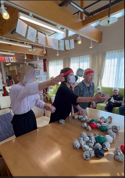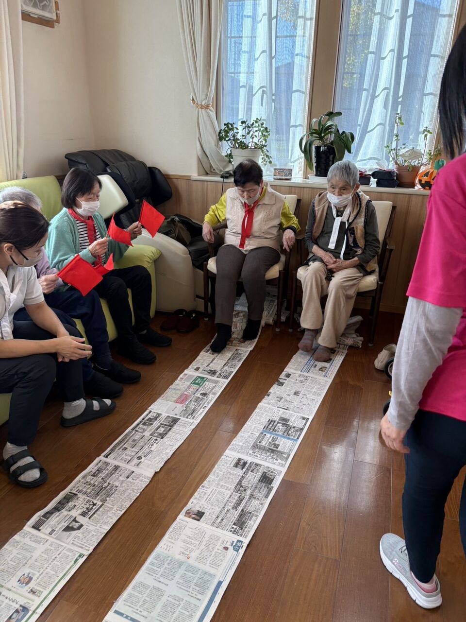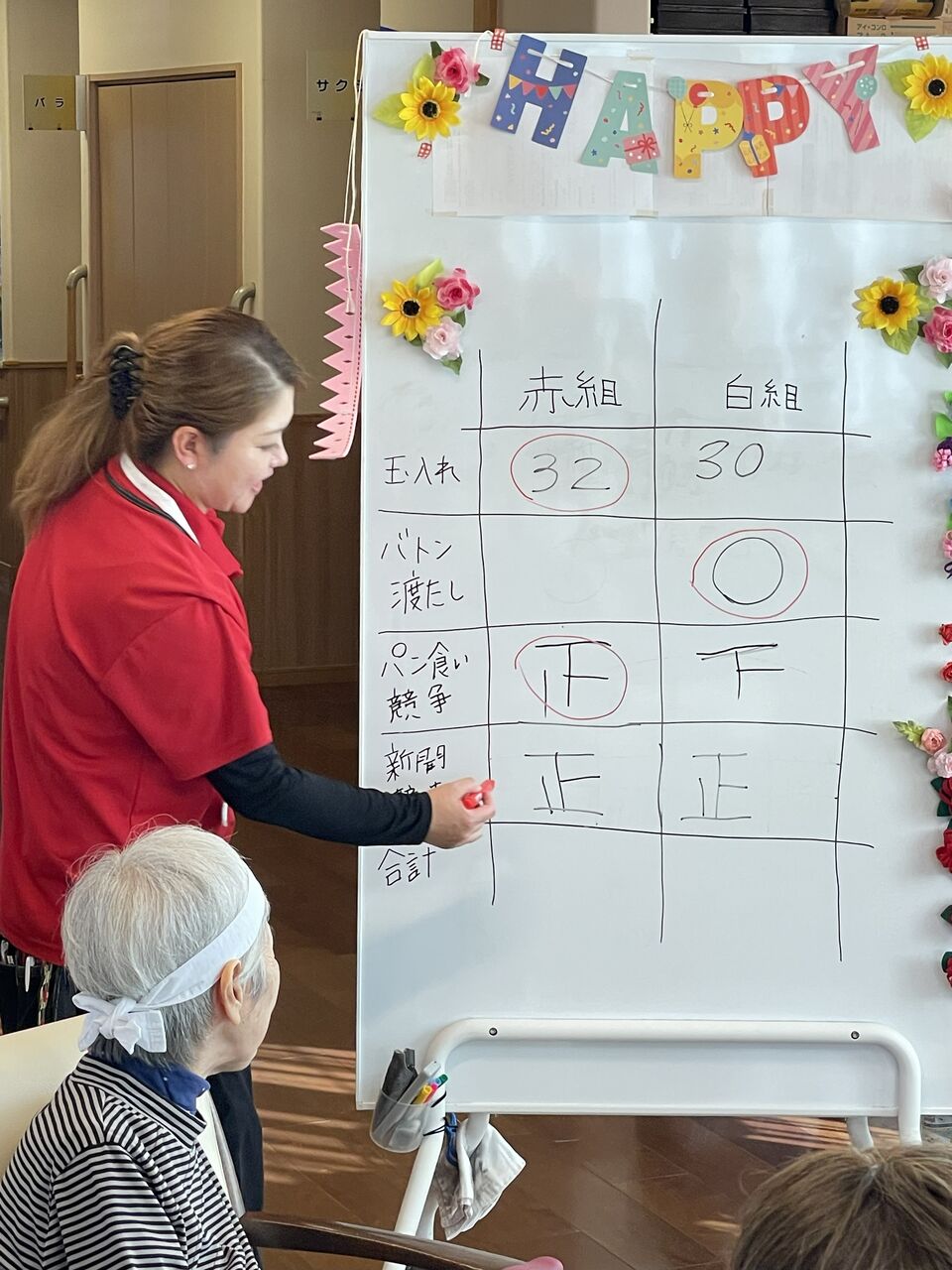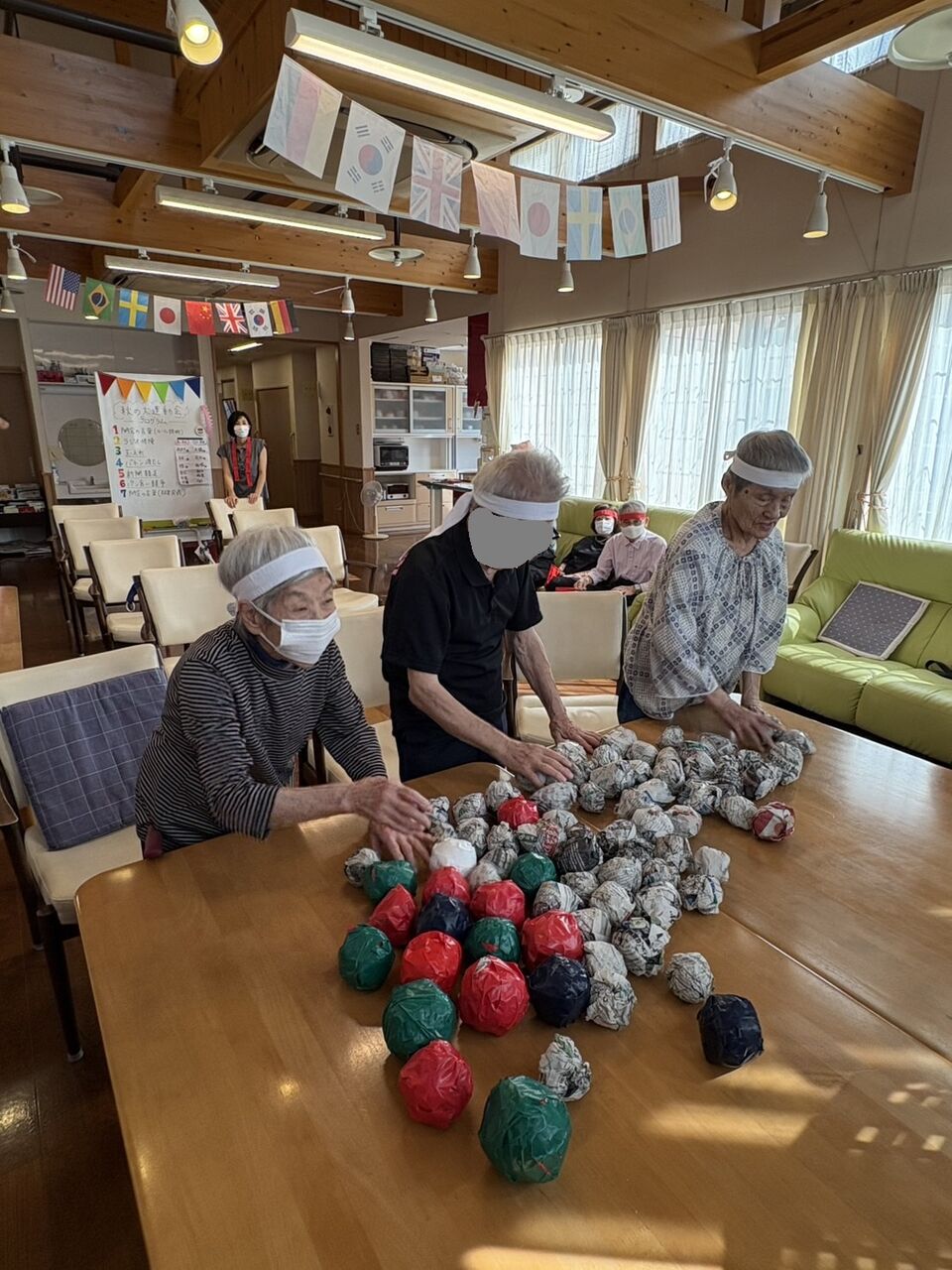 玉入れに始まり、パン食い競争、新聞リレーなど複数の競技で勝利に向けてご利用者と職員が共に頑張りました