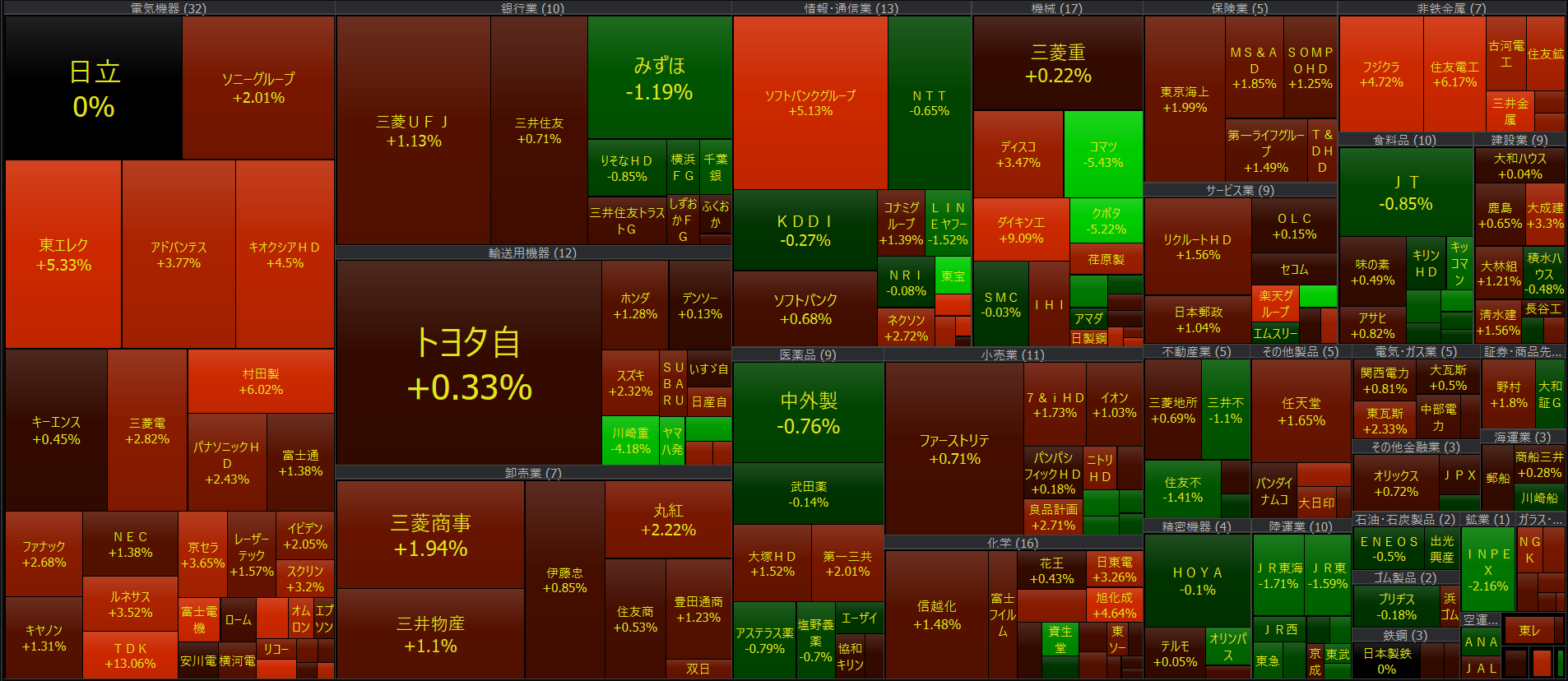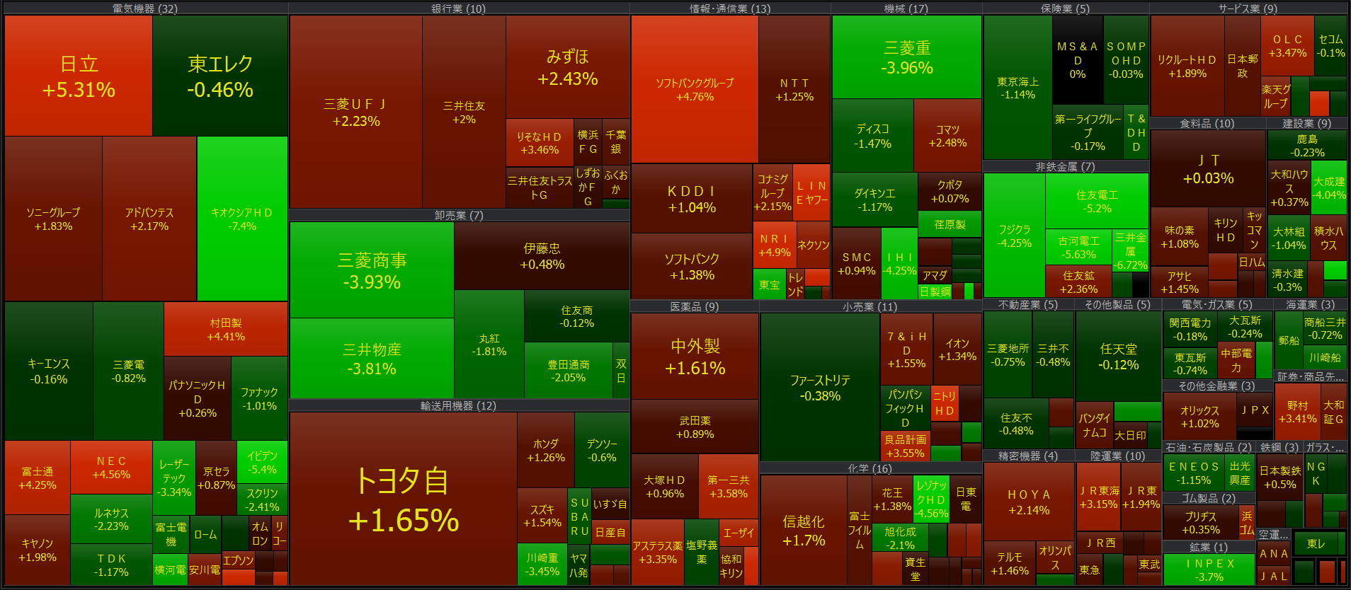 今日は高値警戒感から利益確定売りに押されて安値引け。ここから買い上げて日経平均株価6万円に到達するには何かしら材料が必要だ。終戦発表→ご祝儀相場というのが理想だがそう簡単にはいかないでしょ。半導体一極集中相場から脱却して循環物色にならないと相場がもたない。