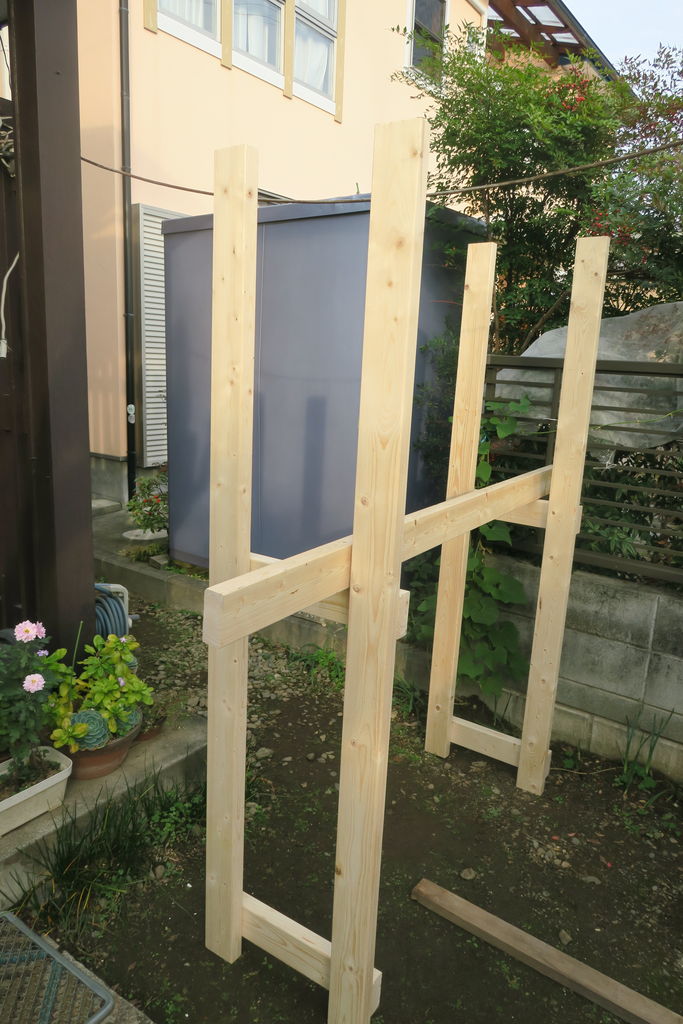1号の半分の幅(1列収納)なので2×4材10本で作ります