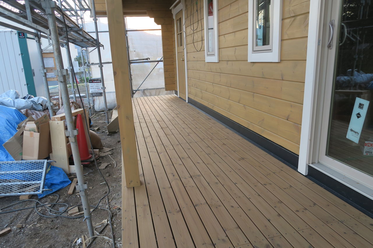1階ウッドデッキ部もシートをはがしてありました
