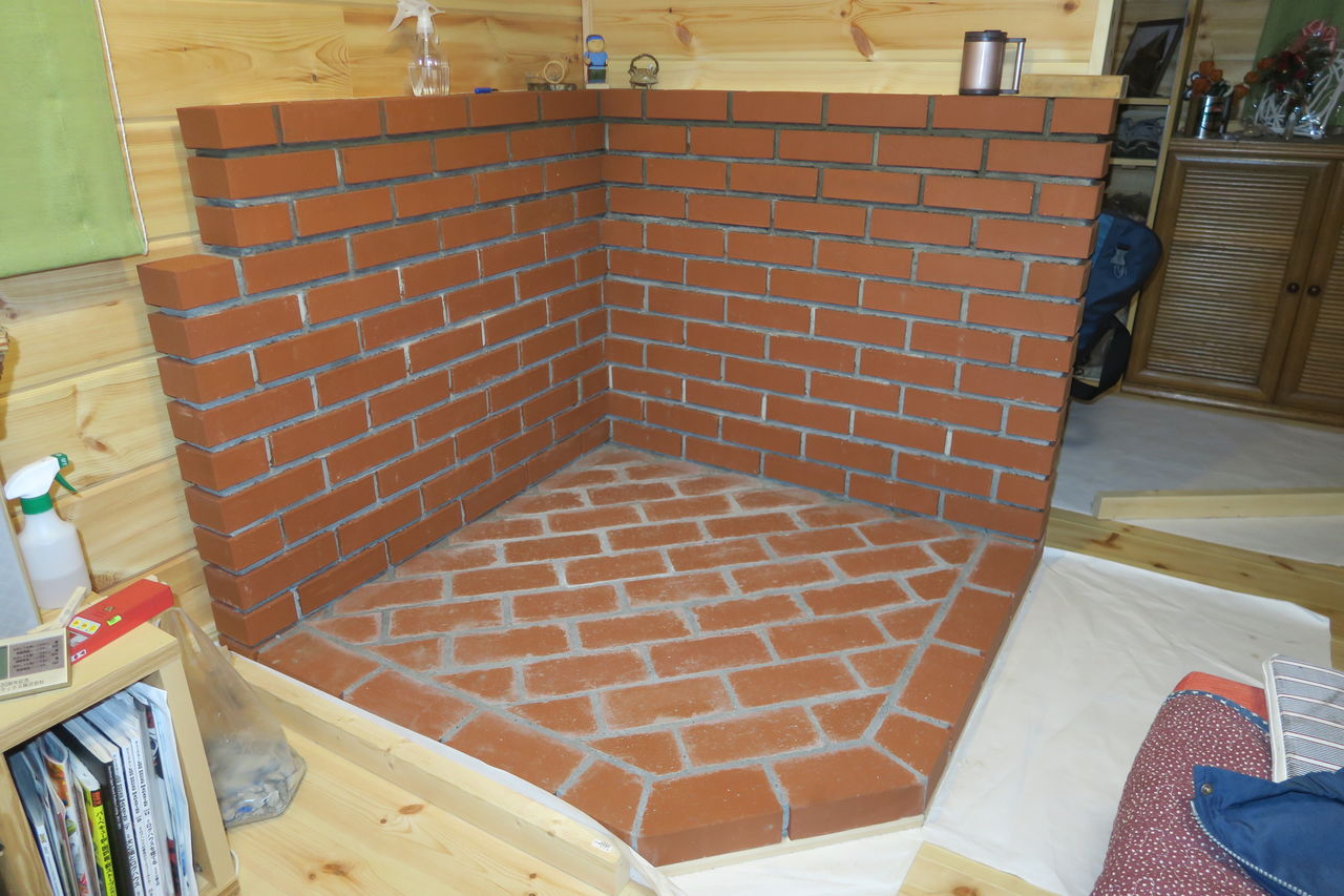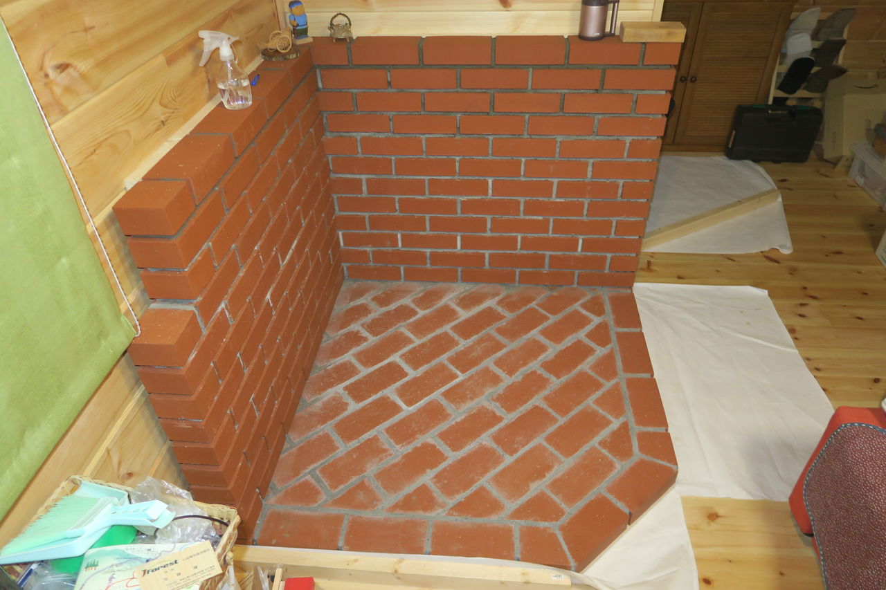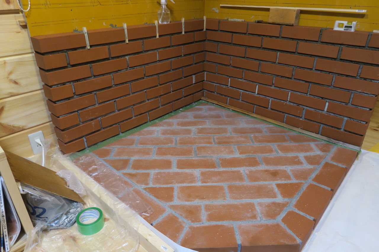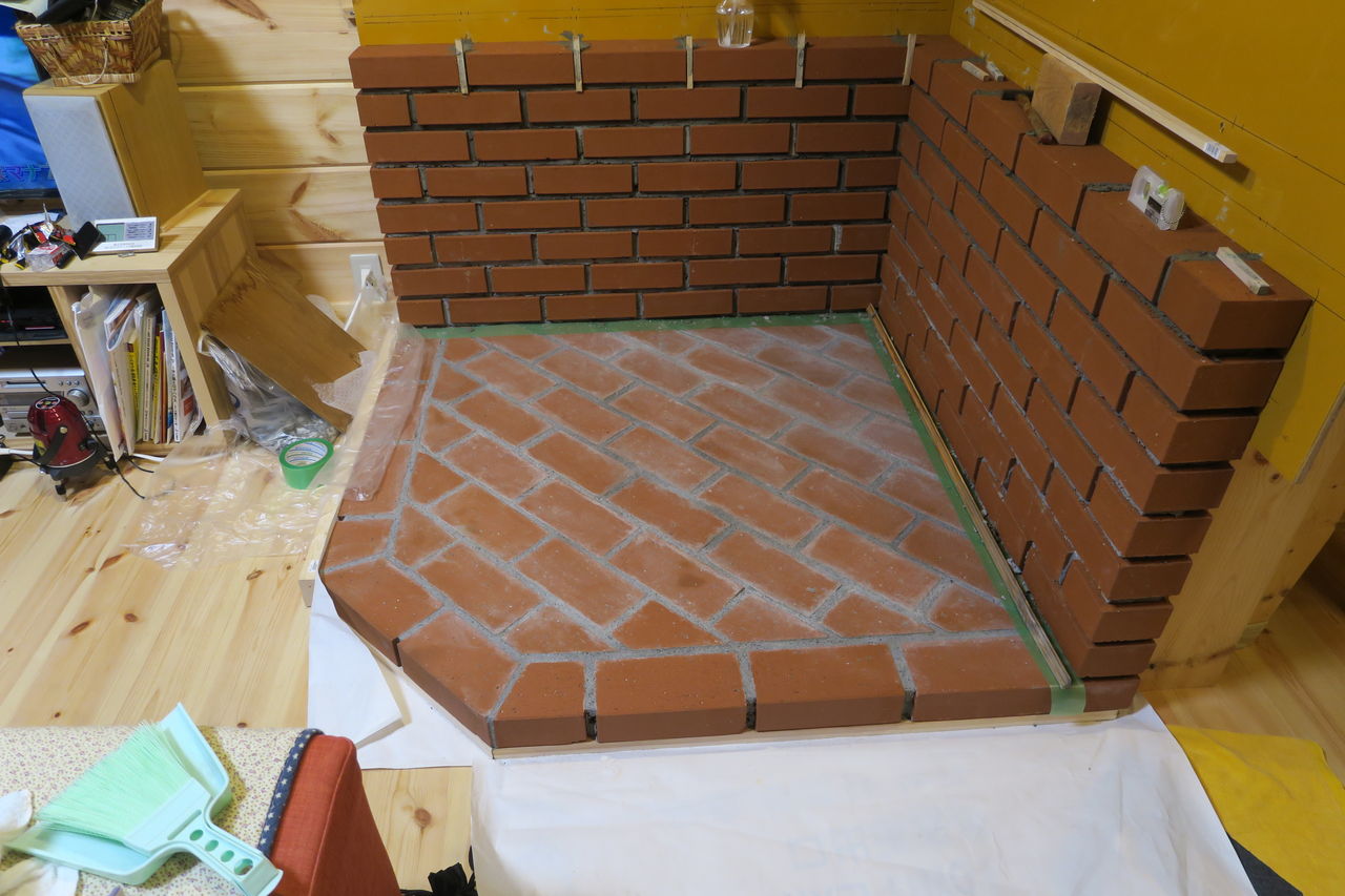 炉台の壁積み上げ作業の最上部(13段目)が完了しました