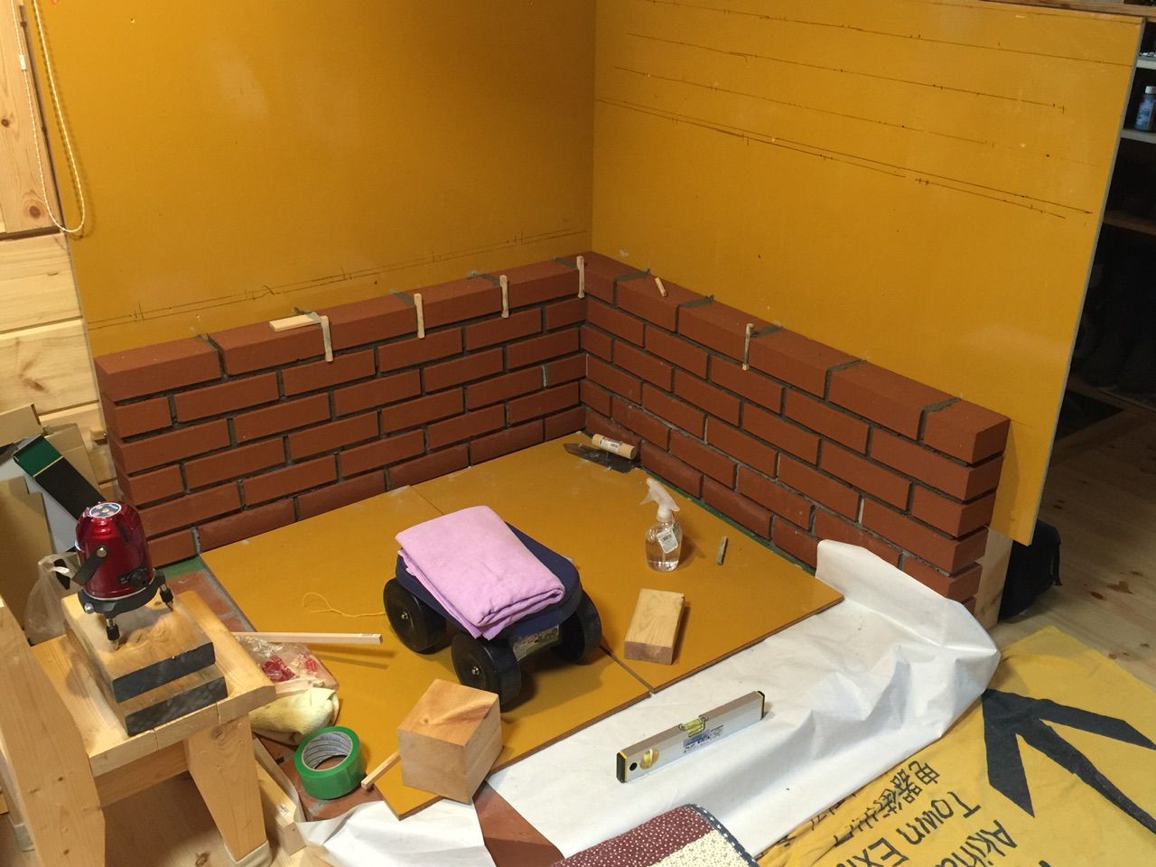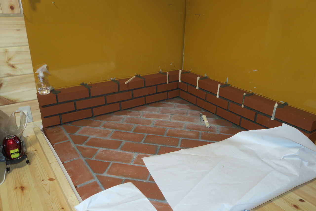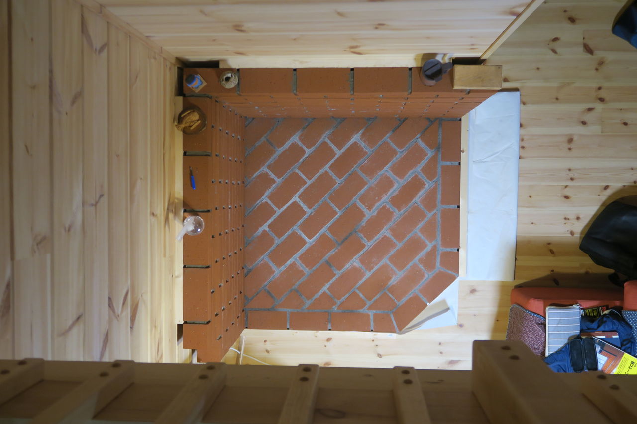 炉台の壁積み上げ作業の最上部(13段目)が完了しました